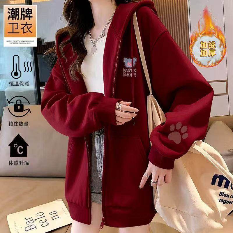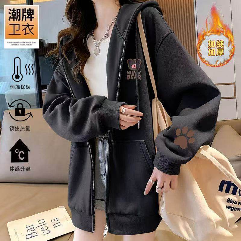 开衫卫衣女学生韩版宽松潮ins冬季拉链加绒连帽上衣外套薄款2025