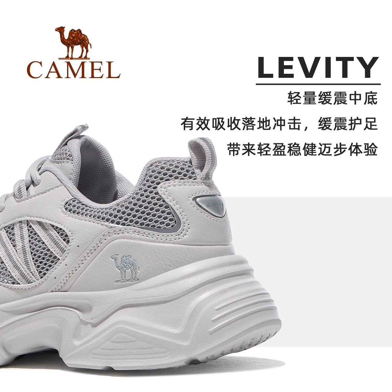 骆驼男鞋老爹鞋2025春季新款防滑轻便网面透气慢跑鞋休闲运动鞋女