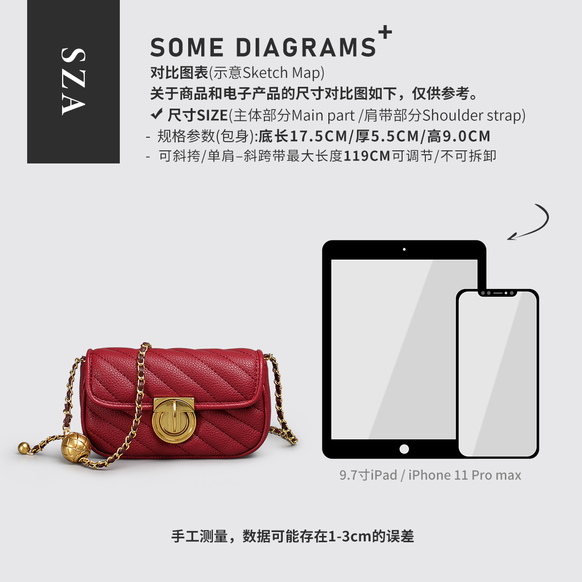 SZA菱格链条单肩斜挎小方包