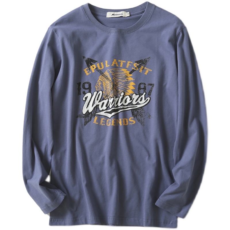 日系复古100%磨毛棉 太舒服!男女圆领印花宽松休闲长袖T恤打底衫