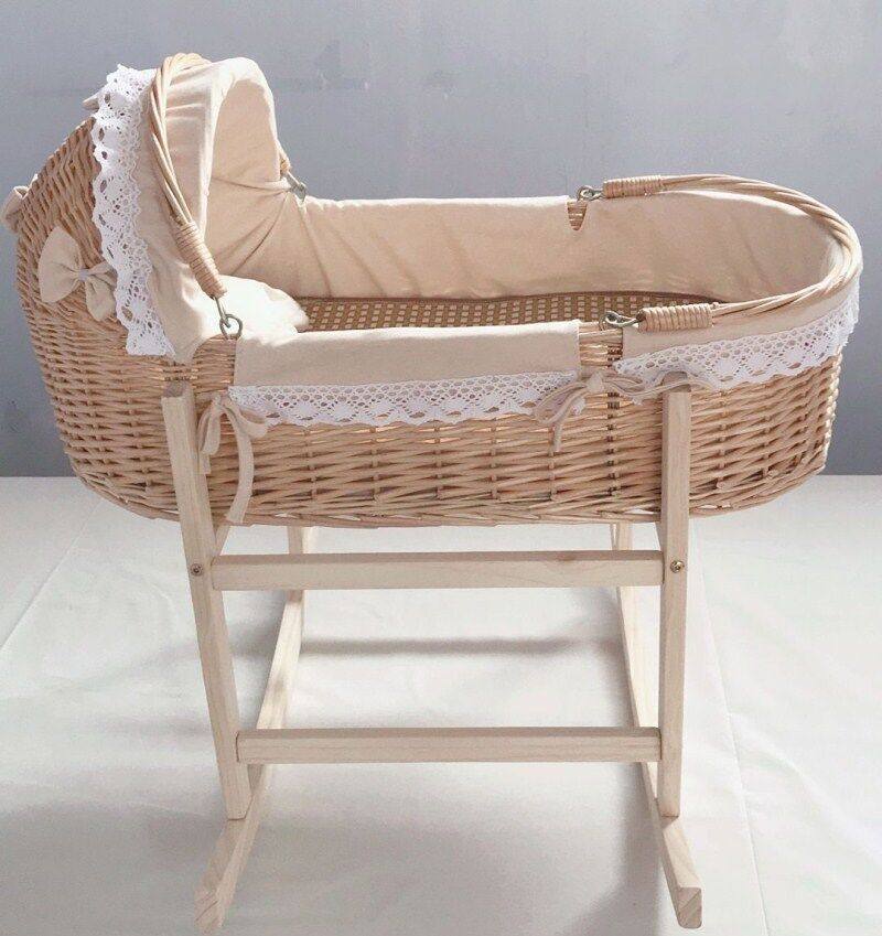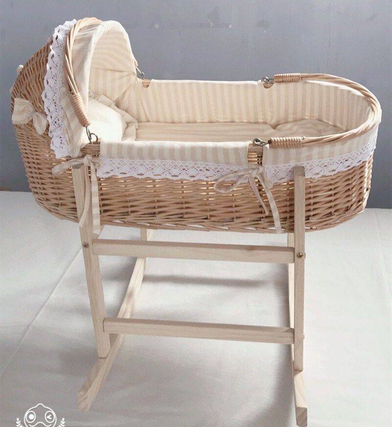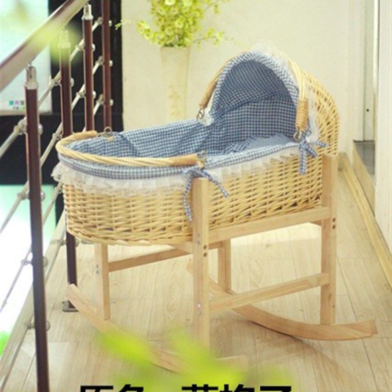 藤编新生婴儿外出便携手提篮车载安D抚哄娃睡篮宝宝床推车实木摇