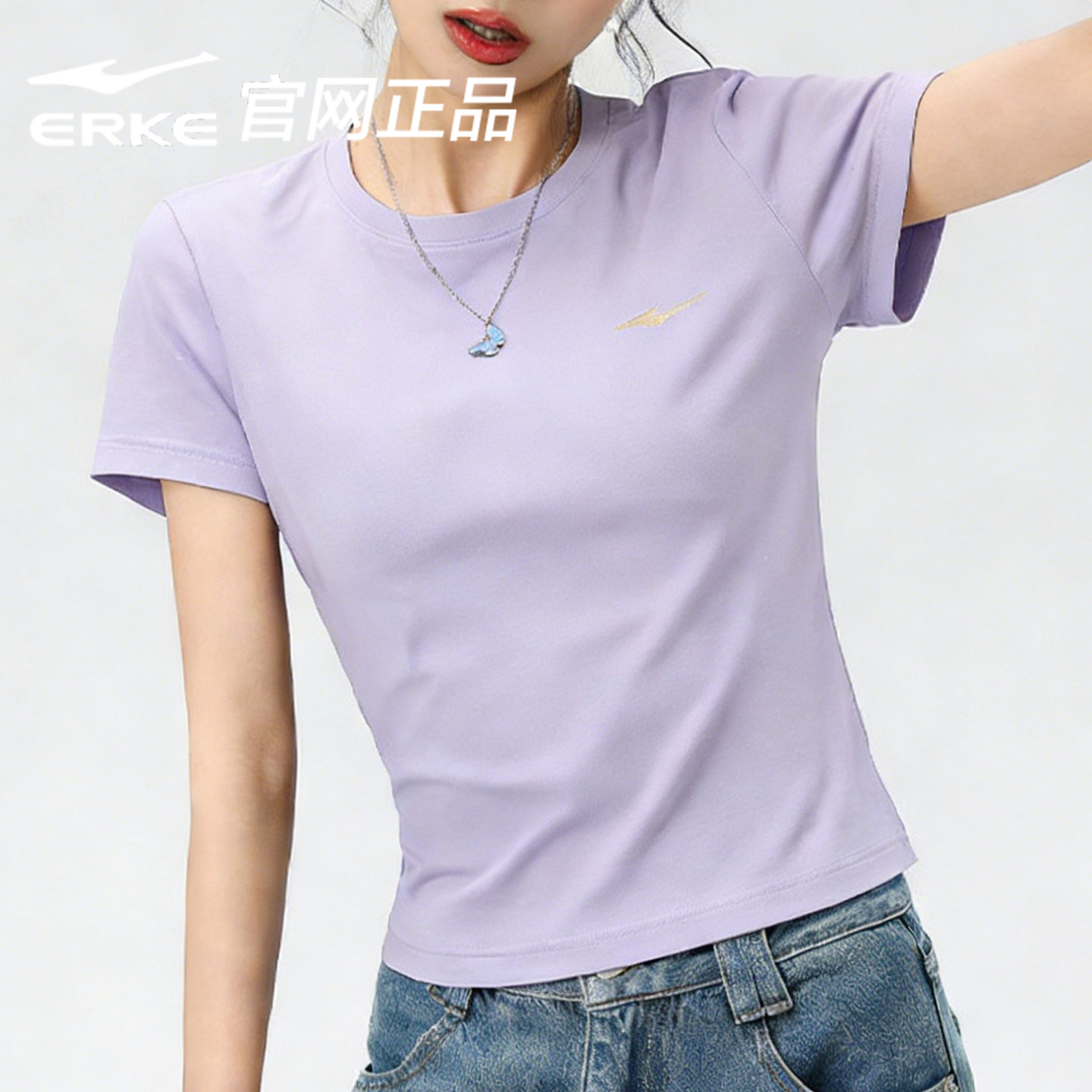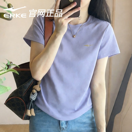 鸿星尔克T恤官方旗舰女款速干运动休闲服透气舒适上衣圆领短袖女