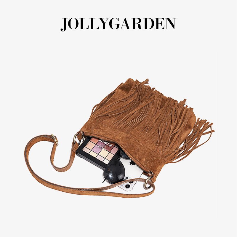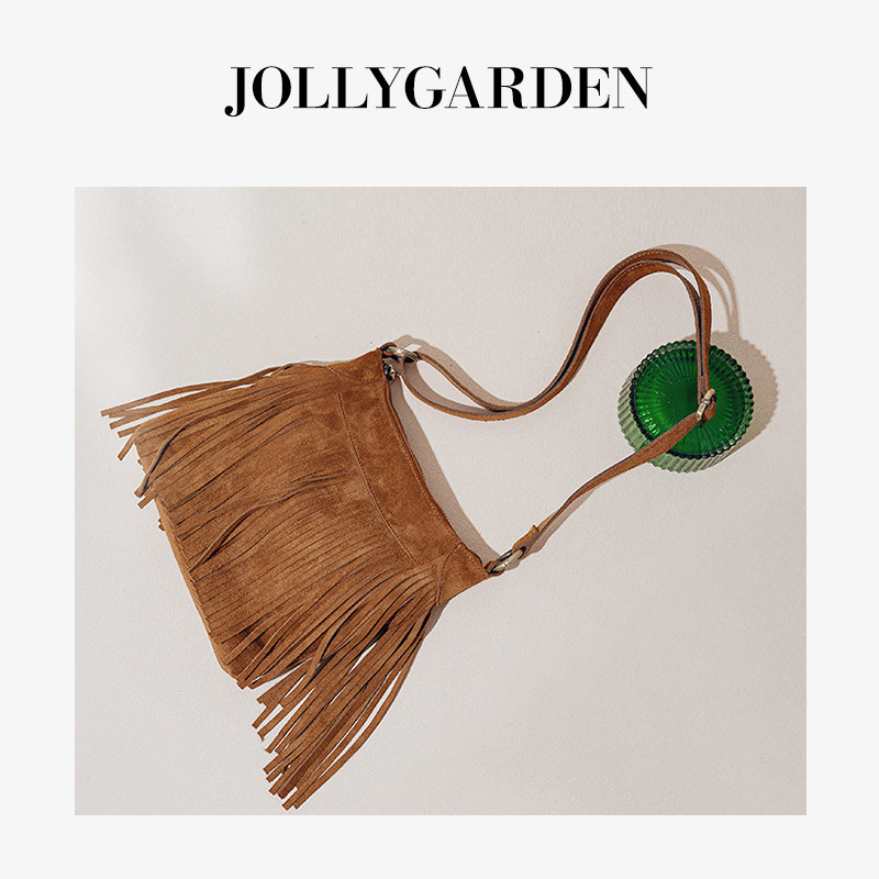 JOLLY GARDEN【流光】新款磨砂牛皮流苏包斜挎潮流欧美风单肩女包