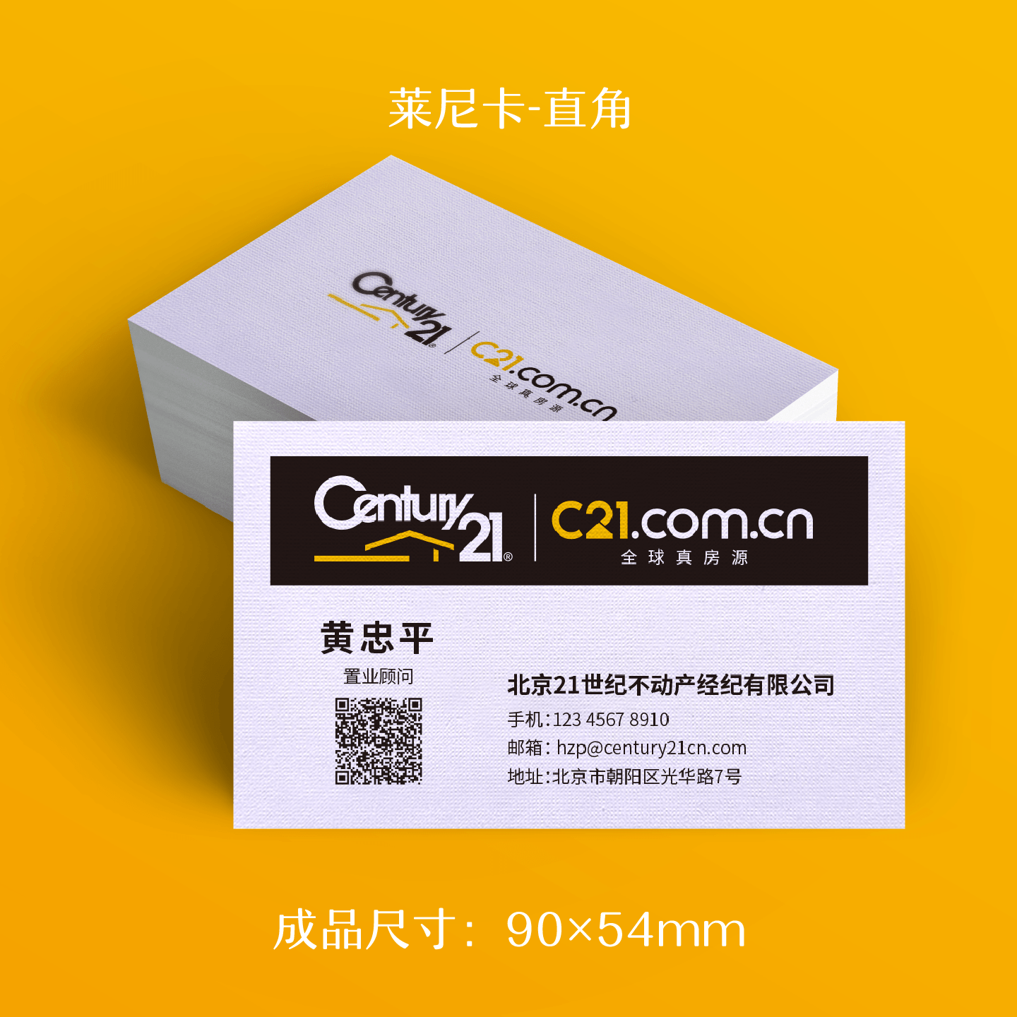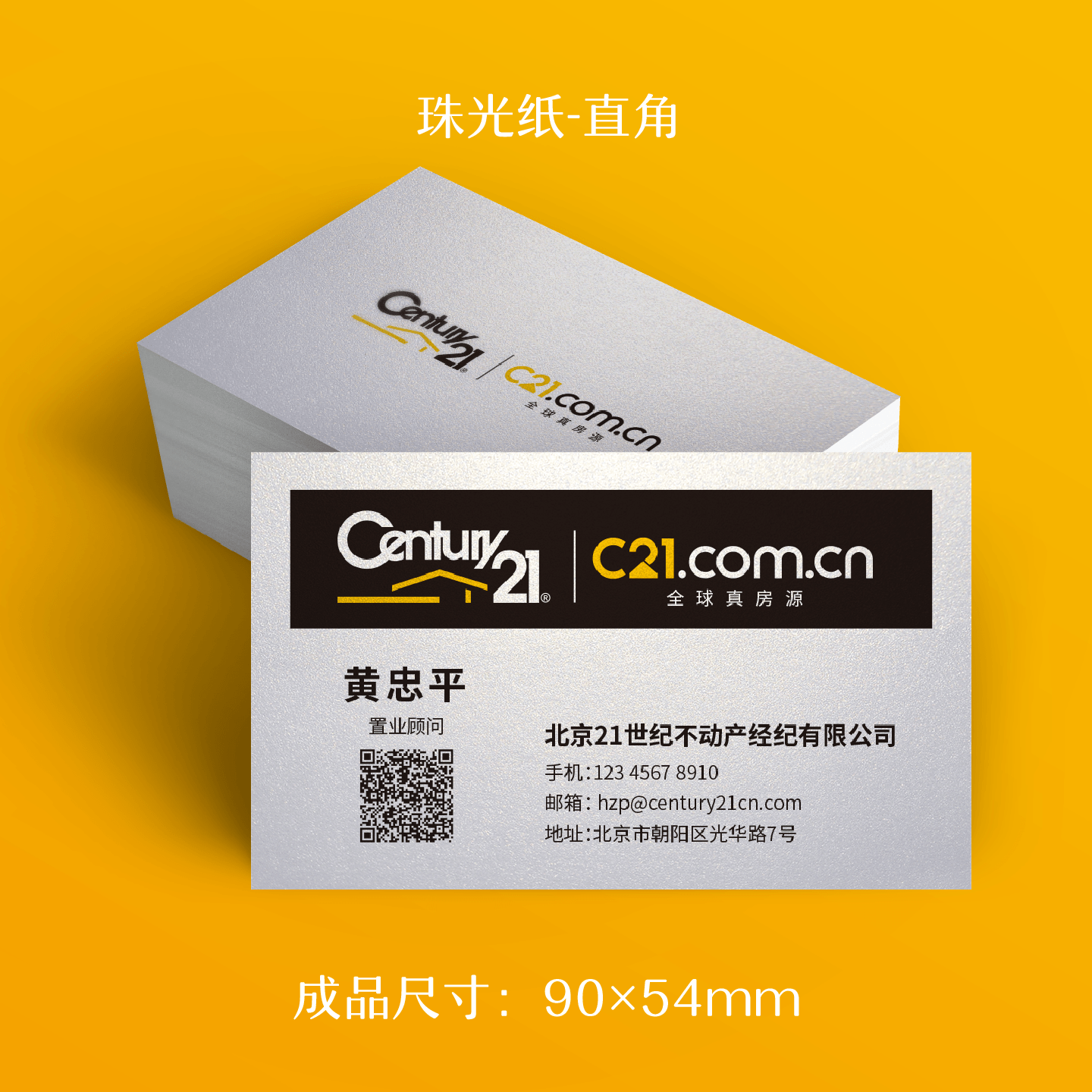 21世纪不动产名片制作印刷设计房屋地产中介经纪人置业顾问二维码