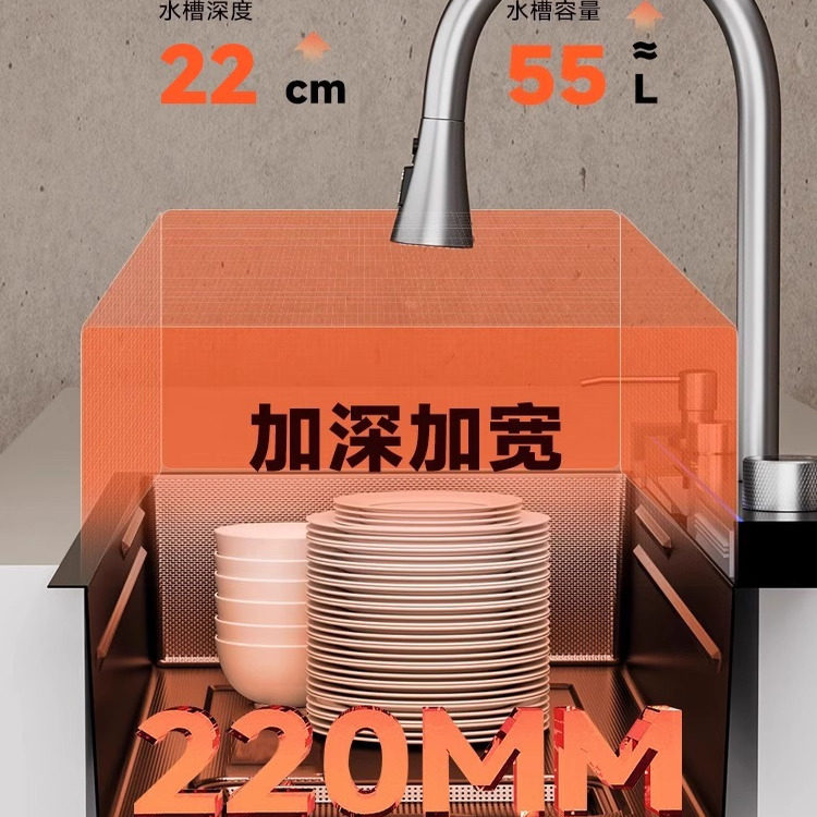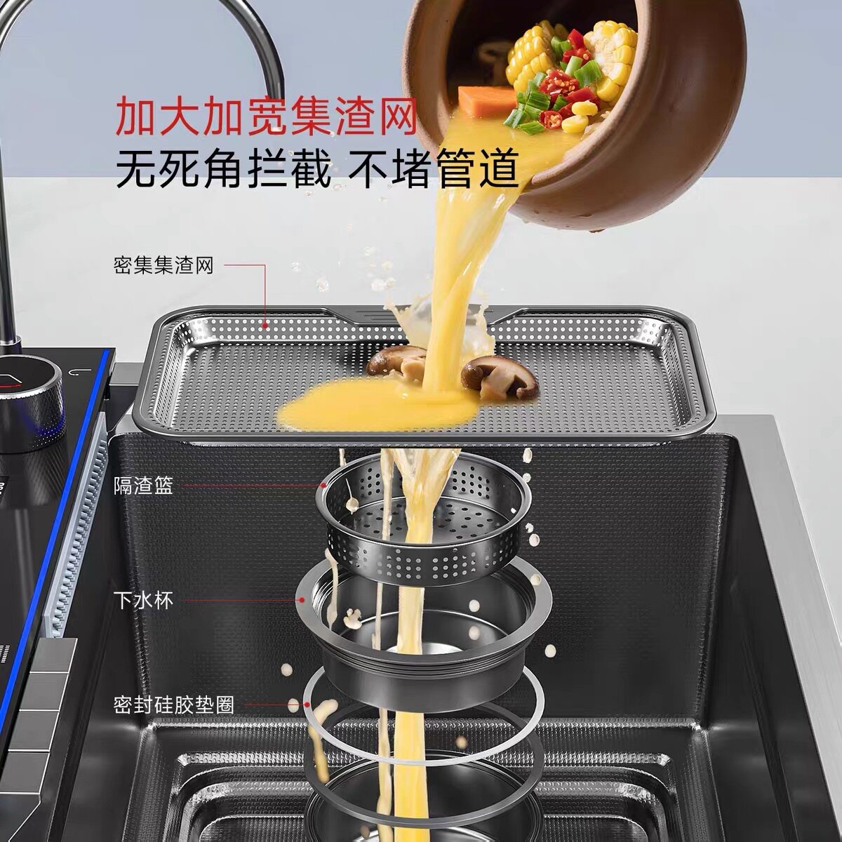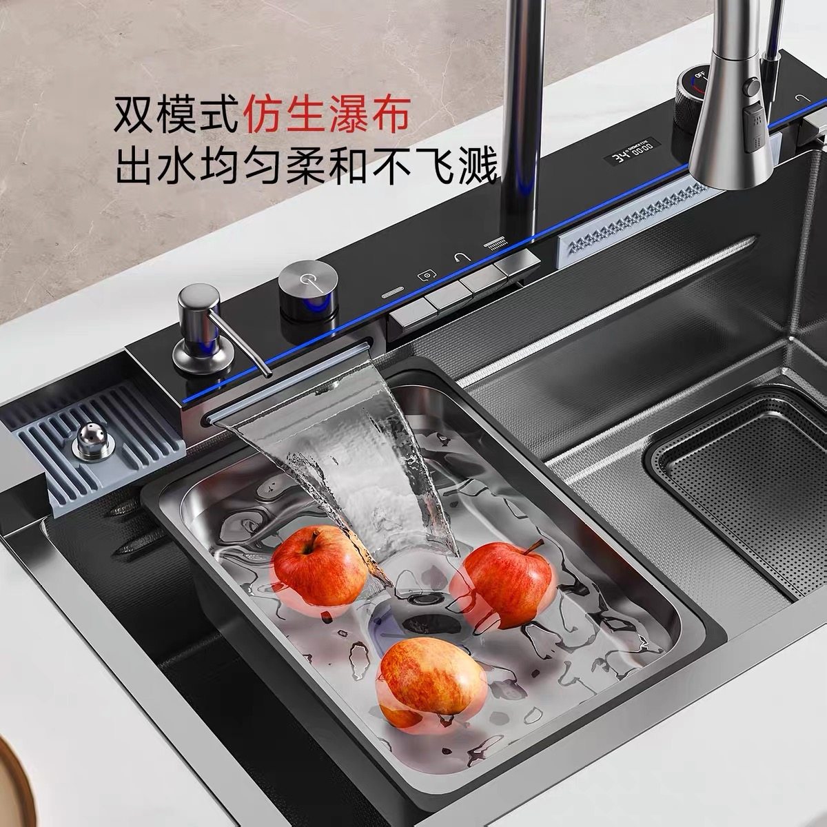 JOMOW鲸鱼飞雨瀑布水槽厨房304不锈钢集渣大单槽纳米多功能洗菜盆