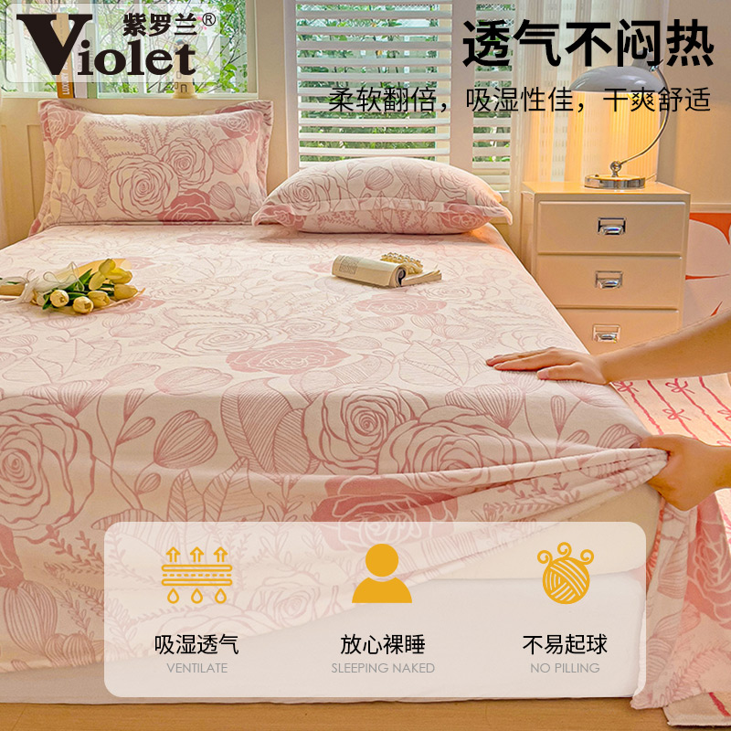 紫罗兰2025新款立体高克重浮雕绒床单秋冬加厚学生宿舍保暖绒床单