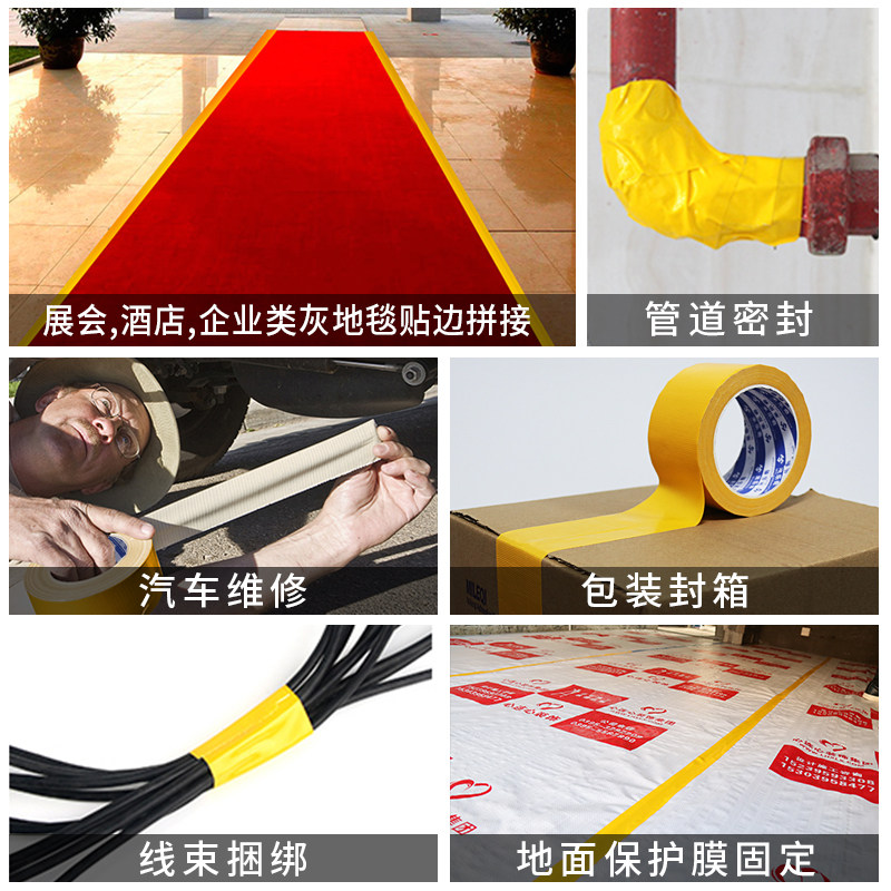 黄色/白色布基地毯胶带防水无痕电器固定加厚防裂快递包装封箱管道密封胶带汽车保养维修胶带线材捆绑胶布