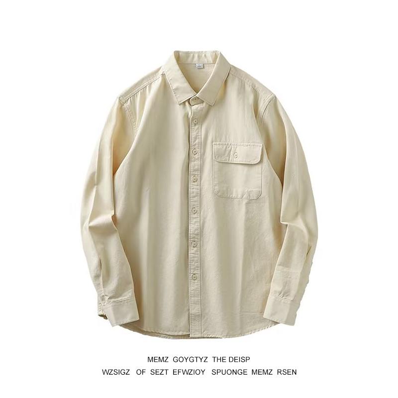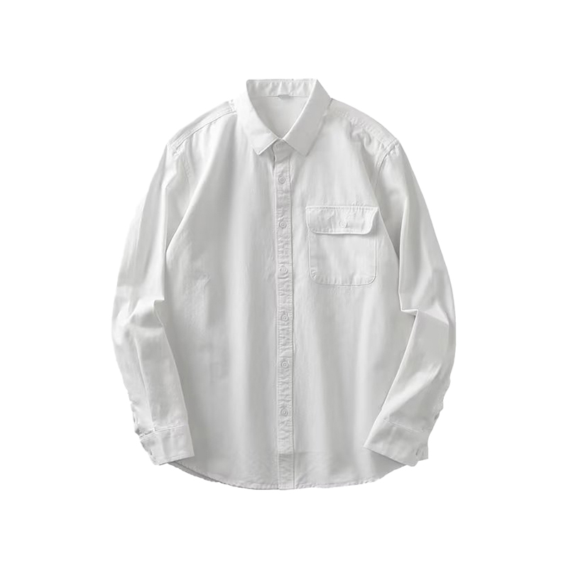 美式简约重磅工装衬衫长袖男春秋口袋纯棉高级感白色衫衣外套百搭