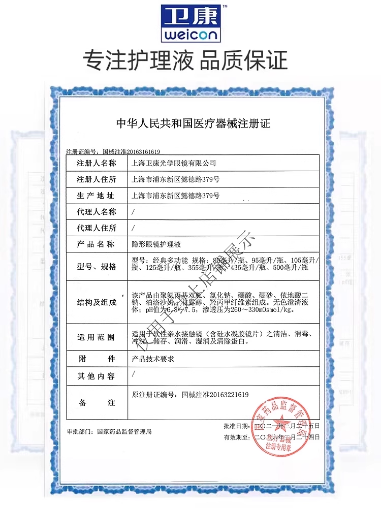 卫康隐形眼镜护理液500+125ml瓶近视美瞳润滑润眼液小瓶舒适正品
