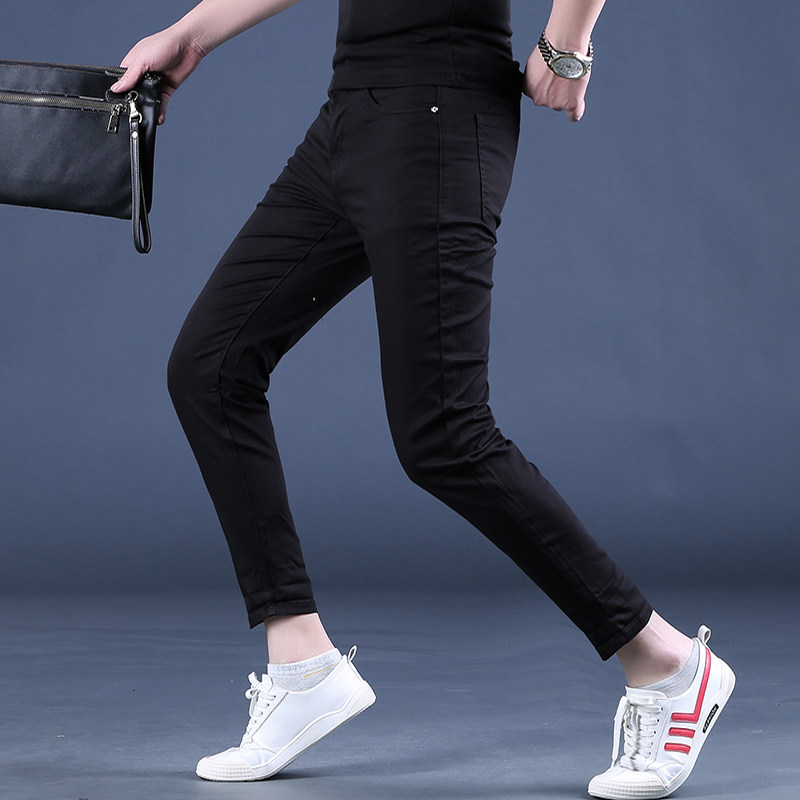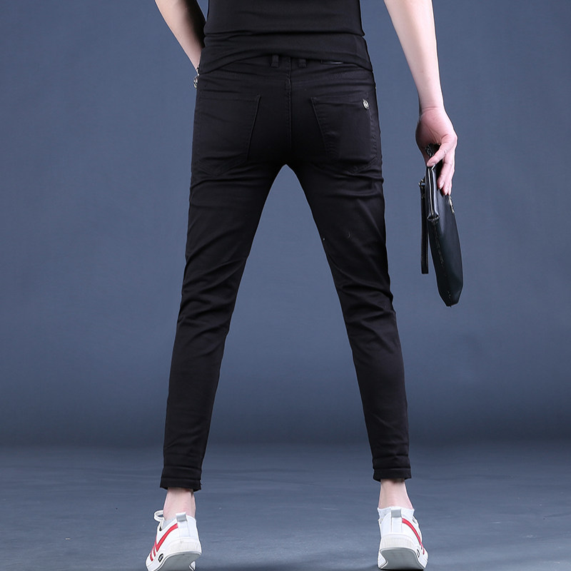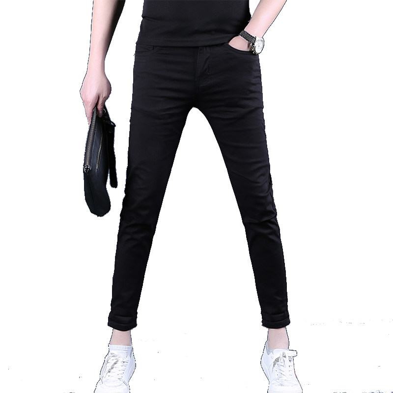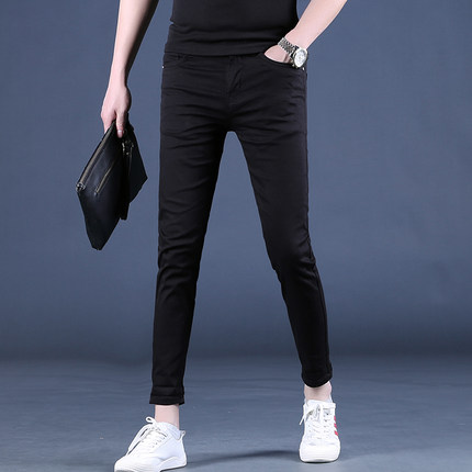 九分裤男士牛仔裤夏款潮流修身小脚纯黑色9分休闲裤潮牌薄款男裤