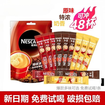 雀巢咖啡正品48条装原味奶香速溶咖啡粉特浓咖啡组合味