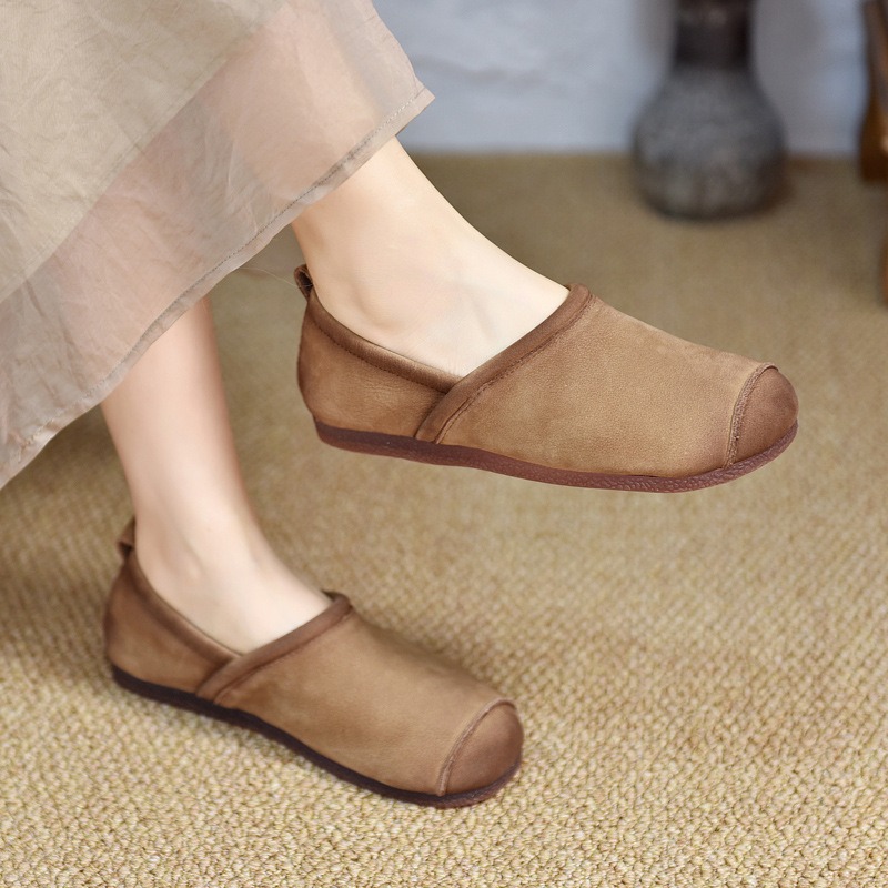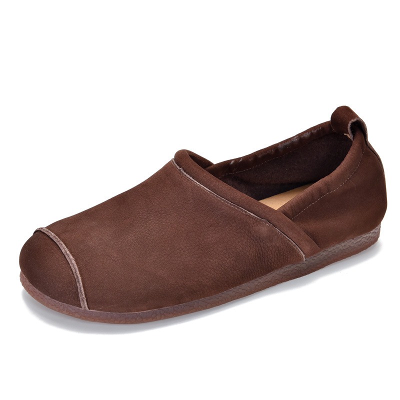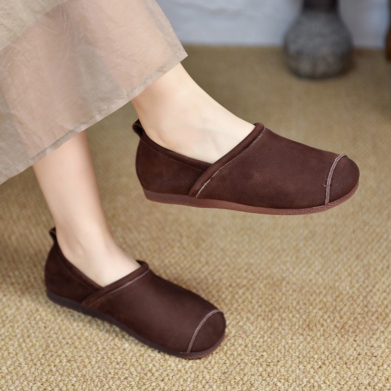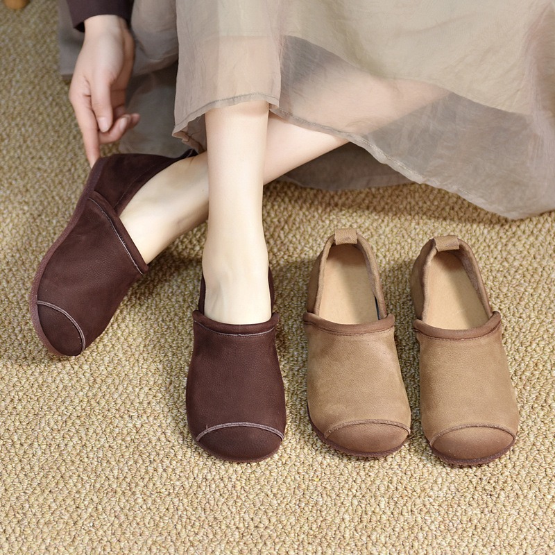 复古手工真皮软皮豆豆鞋平底单鞋百搭四季鞋软底透气深口妈妈鞋子