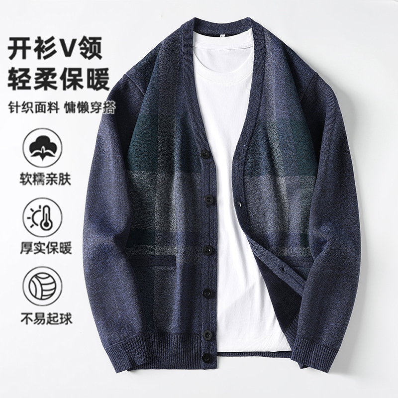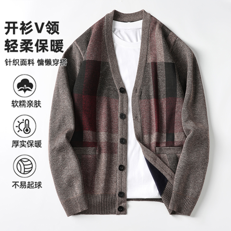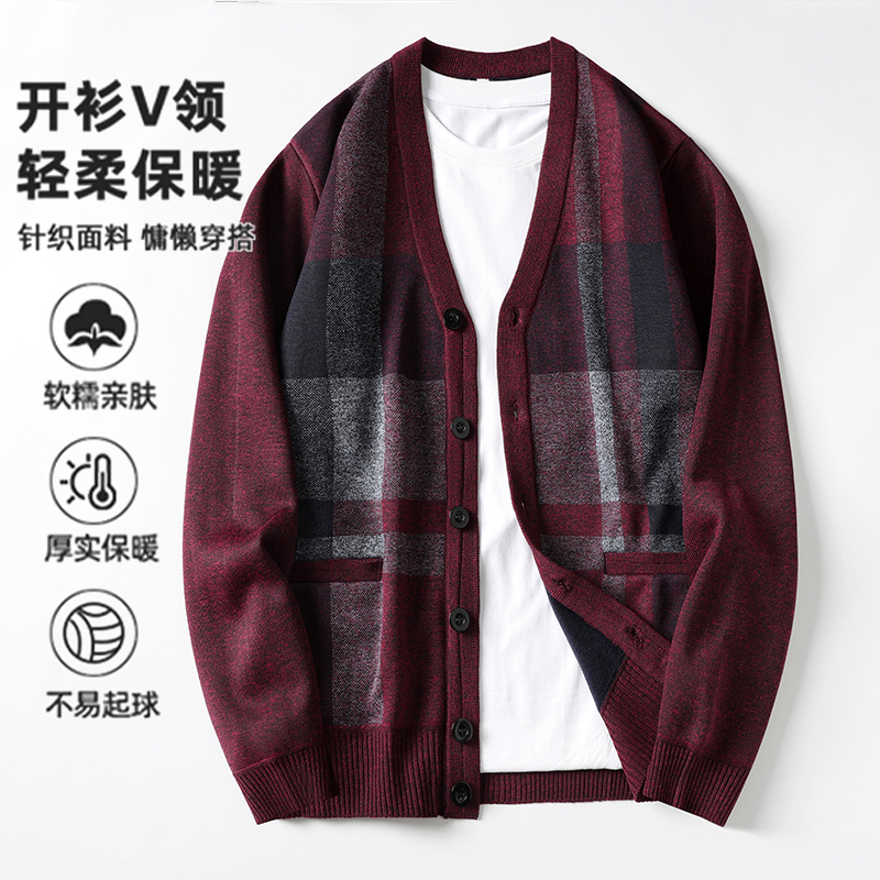 加厚开衫爸爸装秋冬季中老年男装保暖V领针织衫毛衣上衣打底外穿