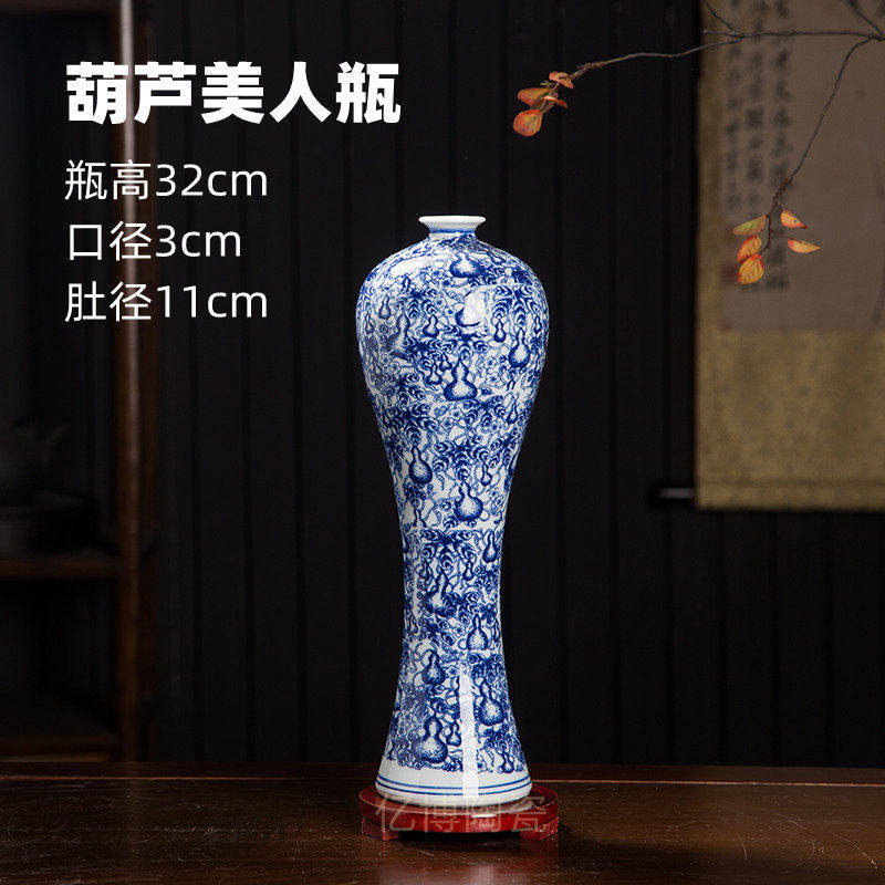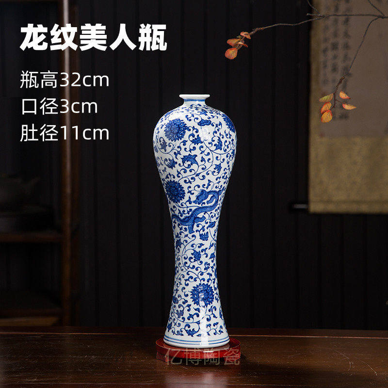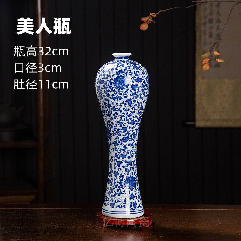 景德镇陶瓷器现代青花瓷美人瓶子客厅办公室装饰陶瓷花瓶插画摆件