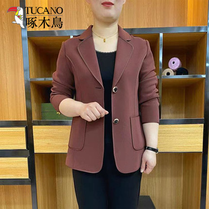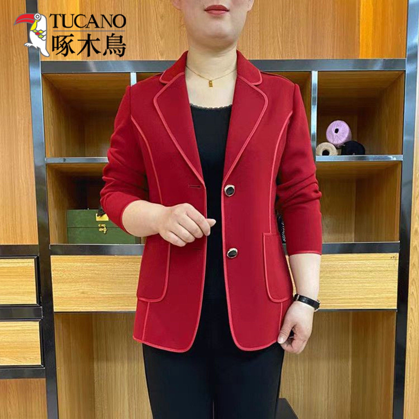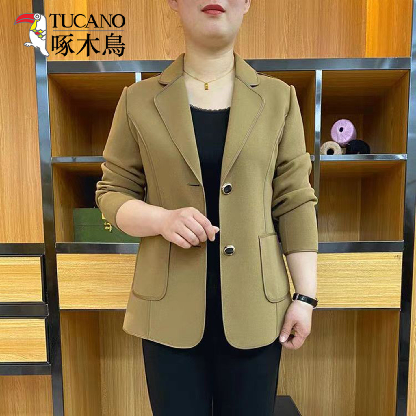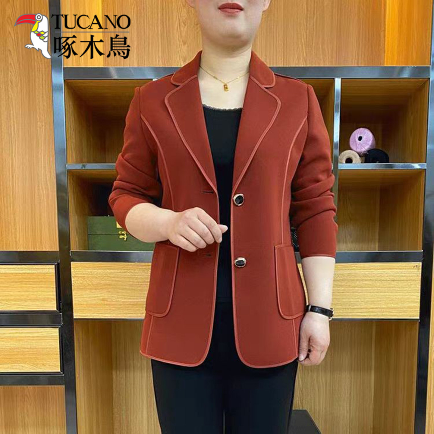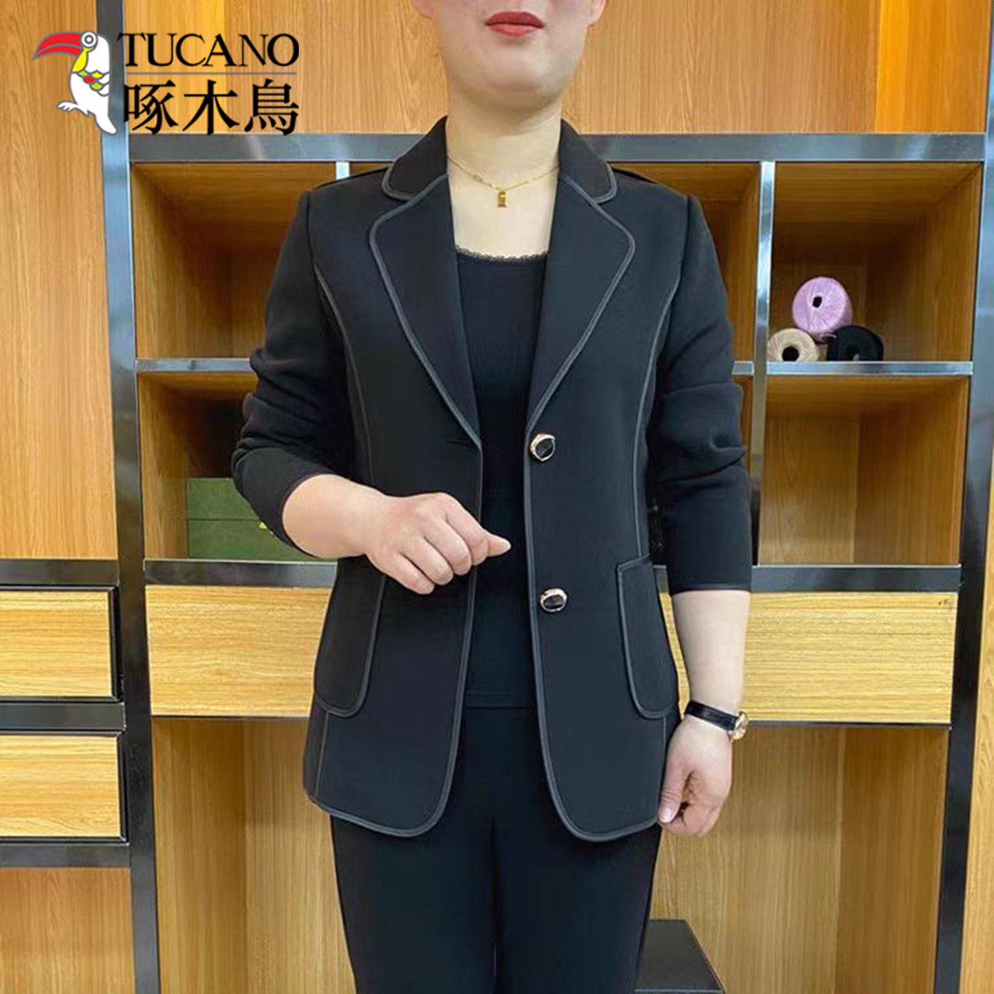 啄木鸟妈妈春装洋气纯色小西装短款2025中老年春秋新款风衣外套女