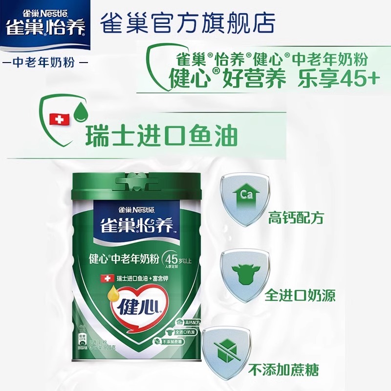 雀巢怡养健心中老年奶粉鱼油配方800g*2罐罐装老人高钙营养奶粉