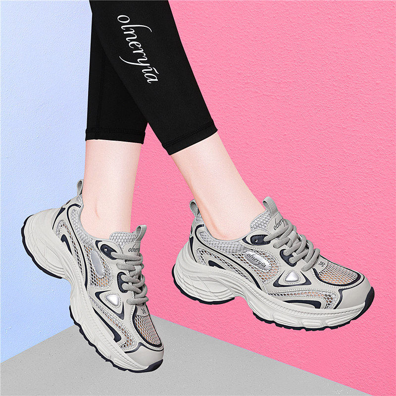 真皮老爹鞋女透气网面凉