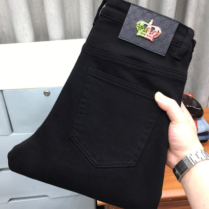 秋季九分男士黑色牛仔裤百搭高端休闲修身小脚纯黑长裤冬季动力牛