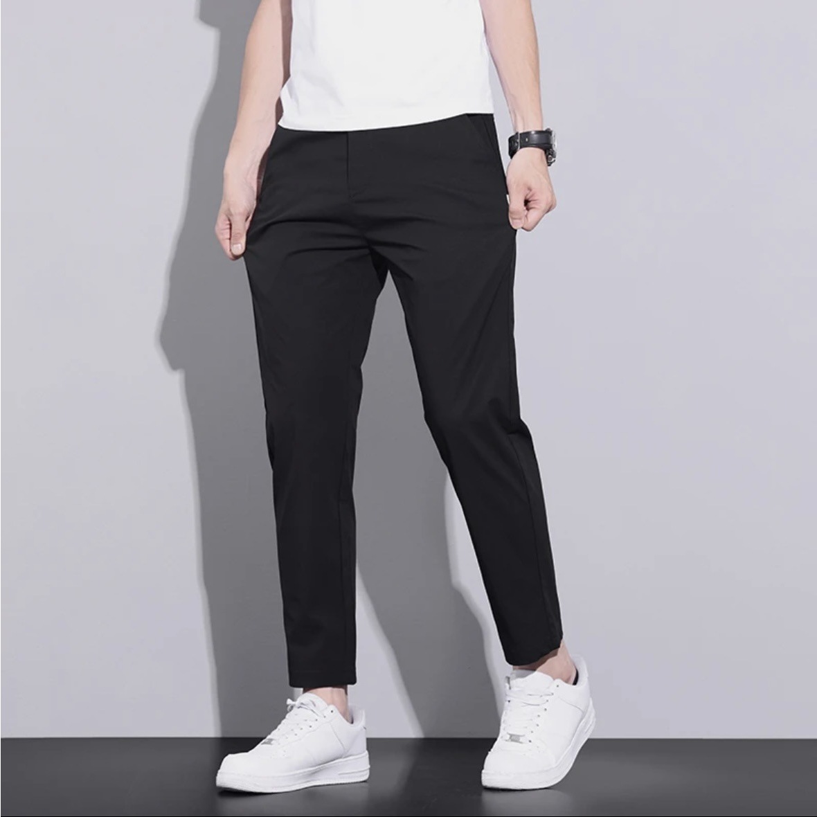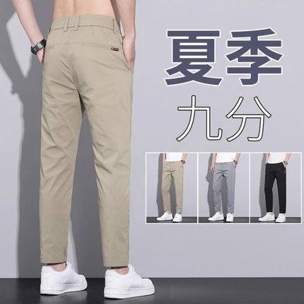 2025男士夏季薄款九分裤纯色百搭宽松弹力直筒裤休闲裤男大码裤子