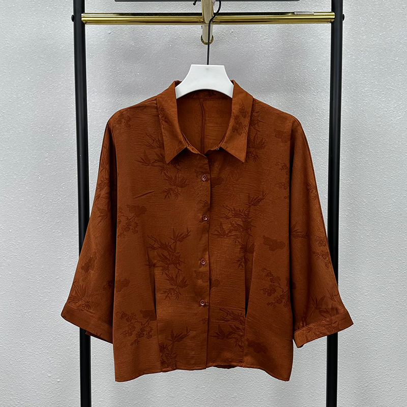 妈妈夏装新国风蝙蝠袖大码衬衫上衣两件套中老年人女夏季休闲套装