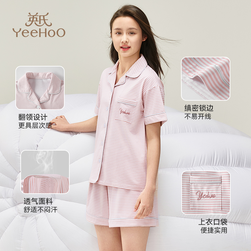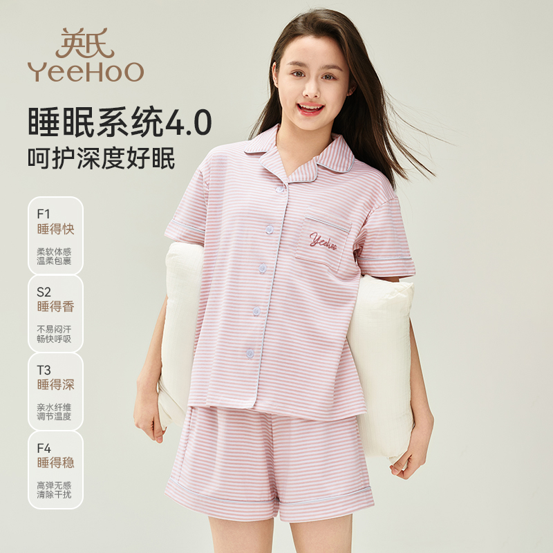 英氏少女睡衣女孩2025年新款春夏季薄款中大童短袖短裤家居服套装