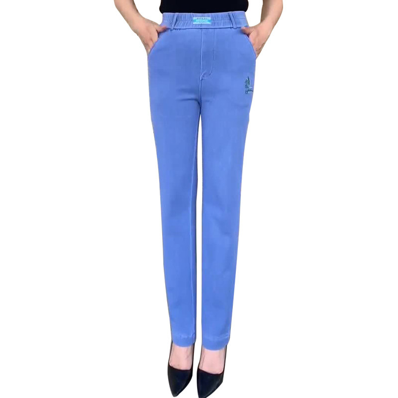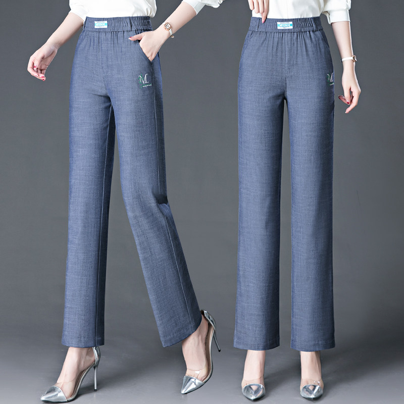 冰丝牛仔裤女夏季薄款高腰弹力宽松大码休闲直筒裤中老年妈妈裤子