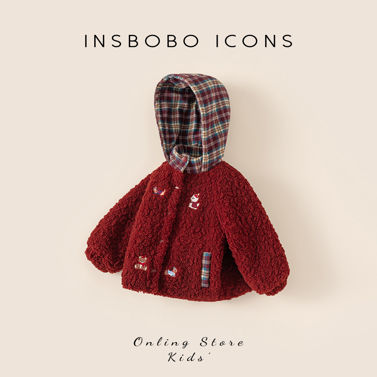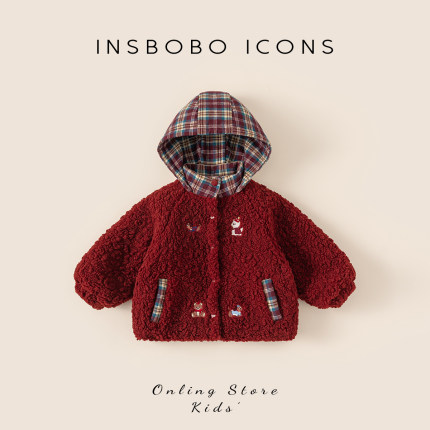 INSbobo儿童卡通绣花连帽棉服