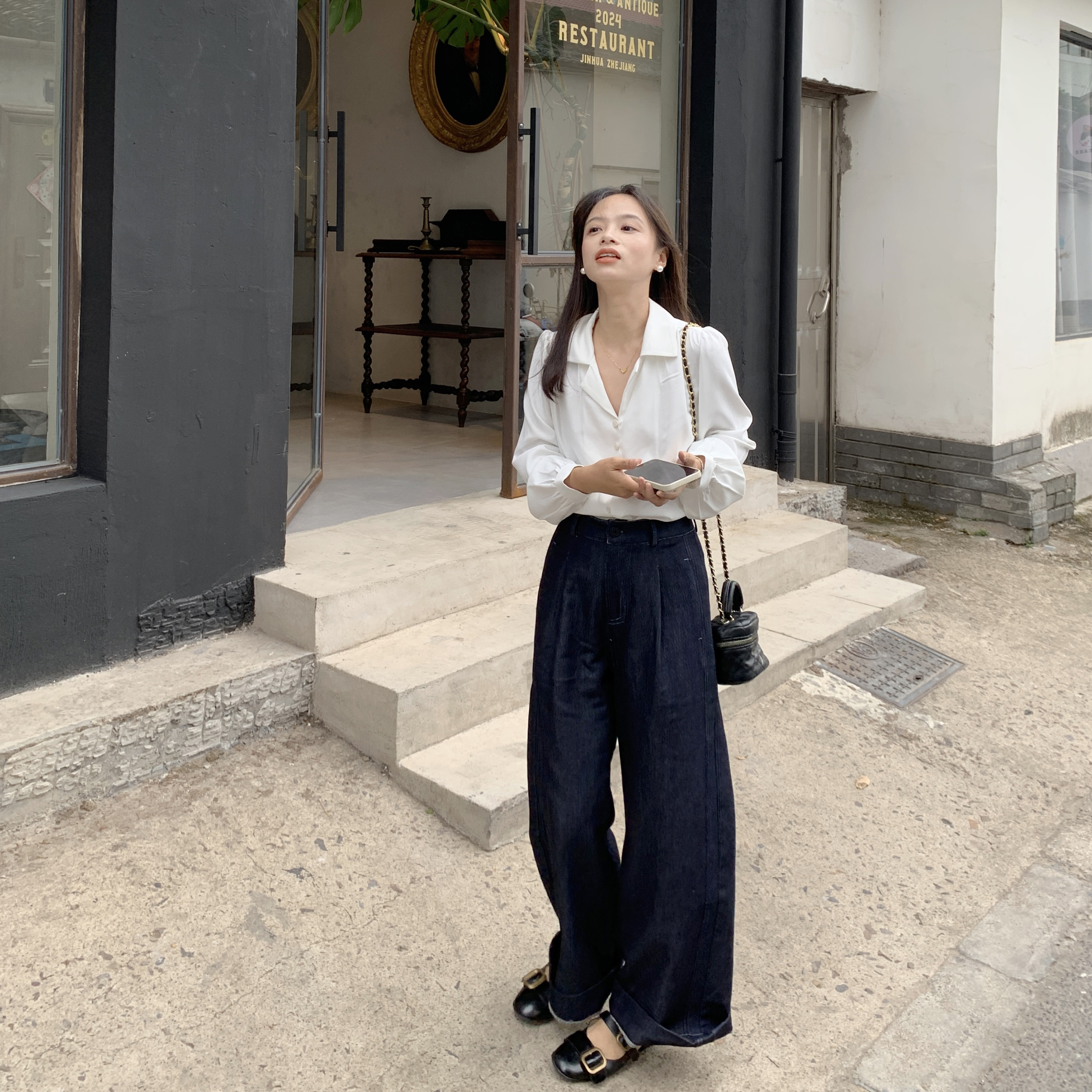 PERRY自制小个子宽松高腰显瘦微喇牛仔裤小码150xxs