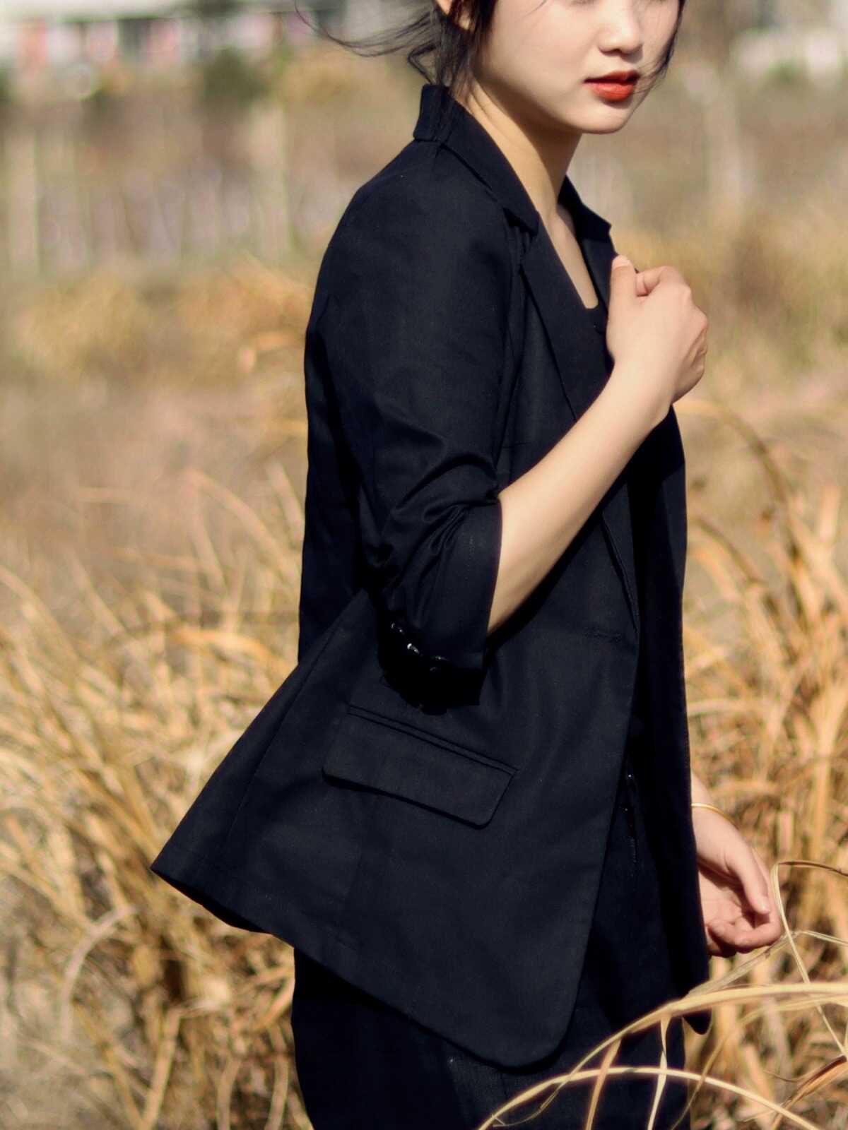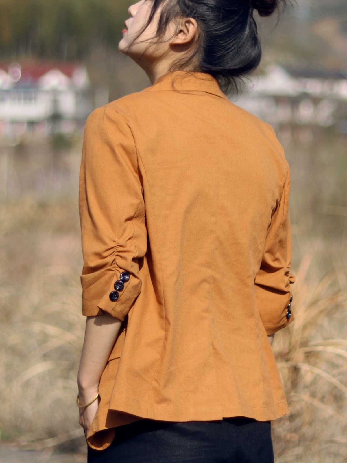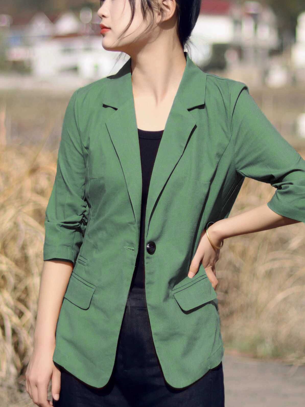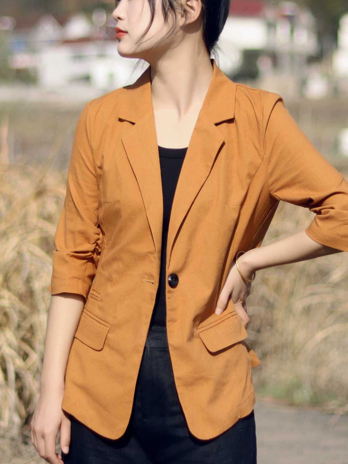 修身棉麻小西服女2024薄款原创设计感亚麻七分袖西装休闲外套上衣
