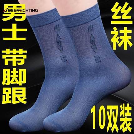 中老年冰丝袜袜子男丝袜带后跟男士中年爸爸夏季薄款透气防臭中筒