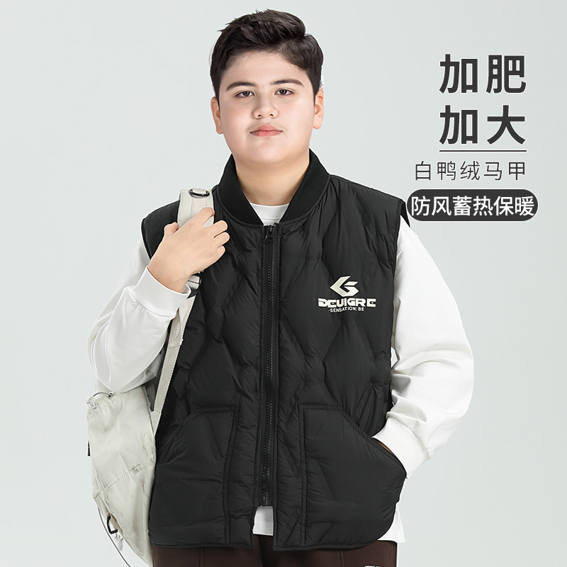 胖男童羽绒马甲加肥加大儿童校服神器外穿马夹青少年坎肩大童背心