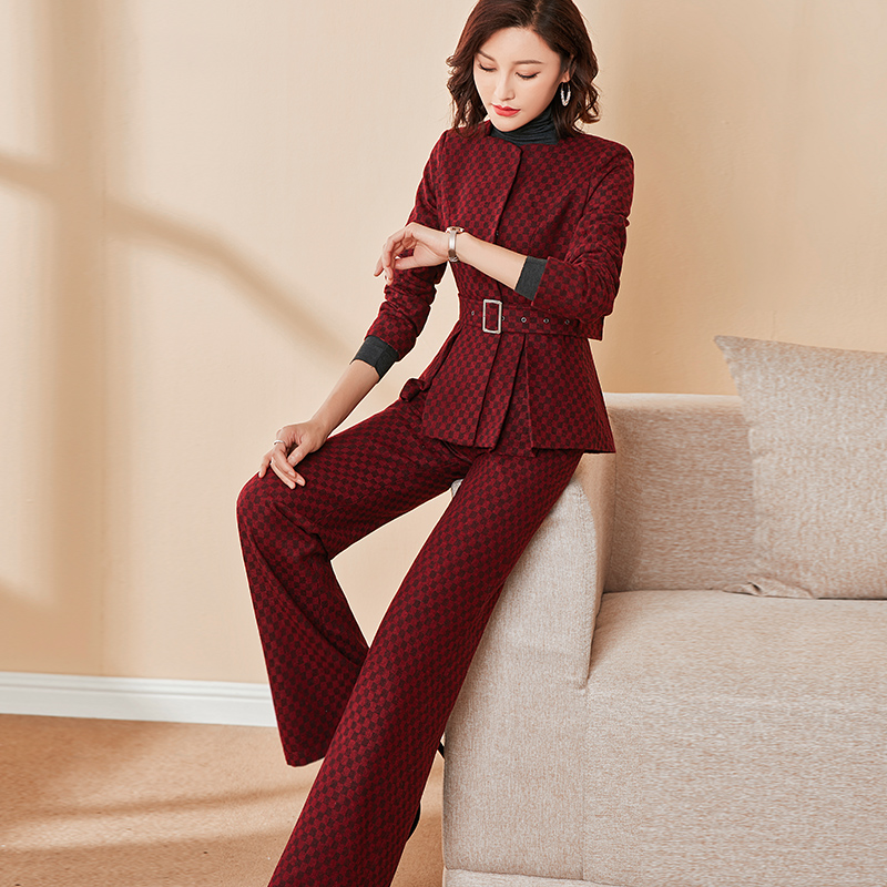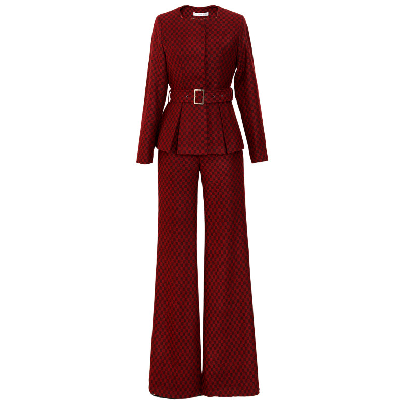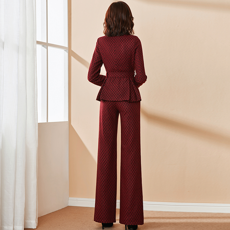 红色格子毛呢套装女2025年春秋新款气质时尚名媛显瘦阔腿裤两件套