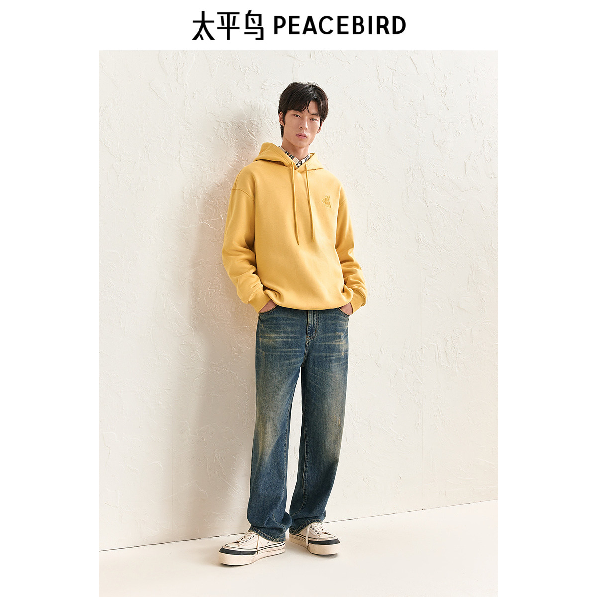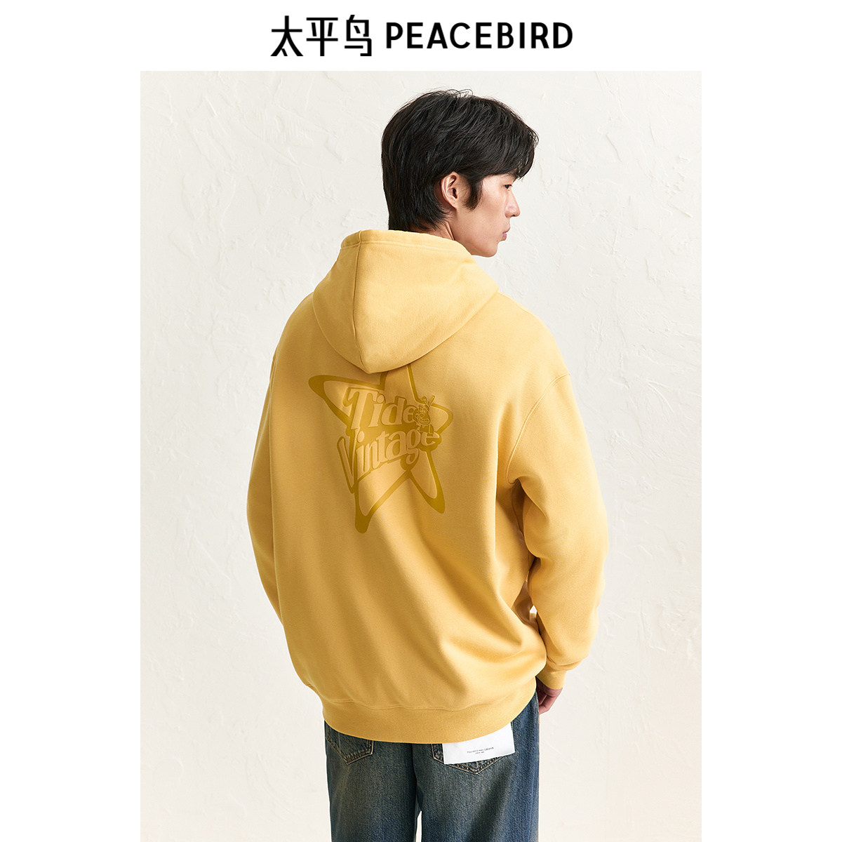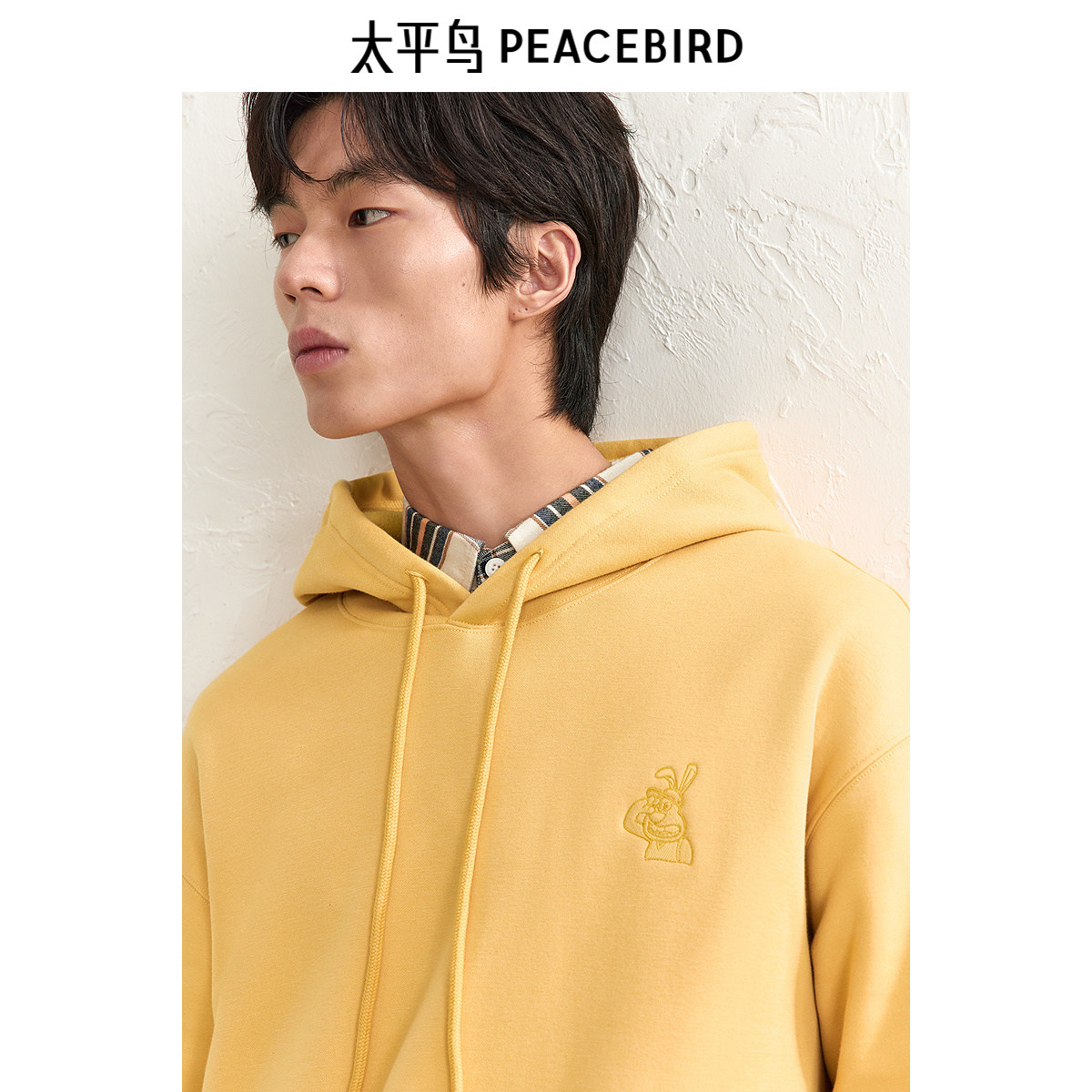 太平鸟男装 连帽舒锦绒加绒卫衣冬季背后图案情侣休闲上衣