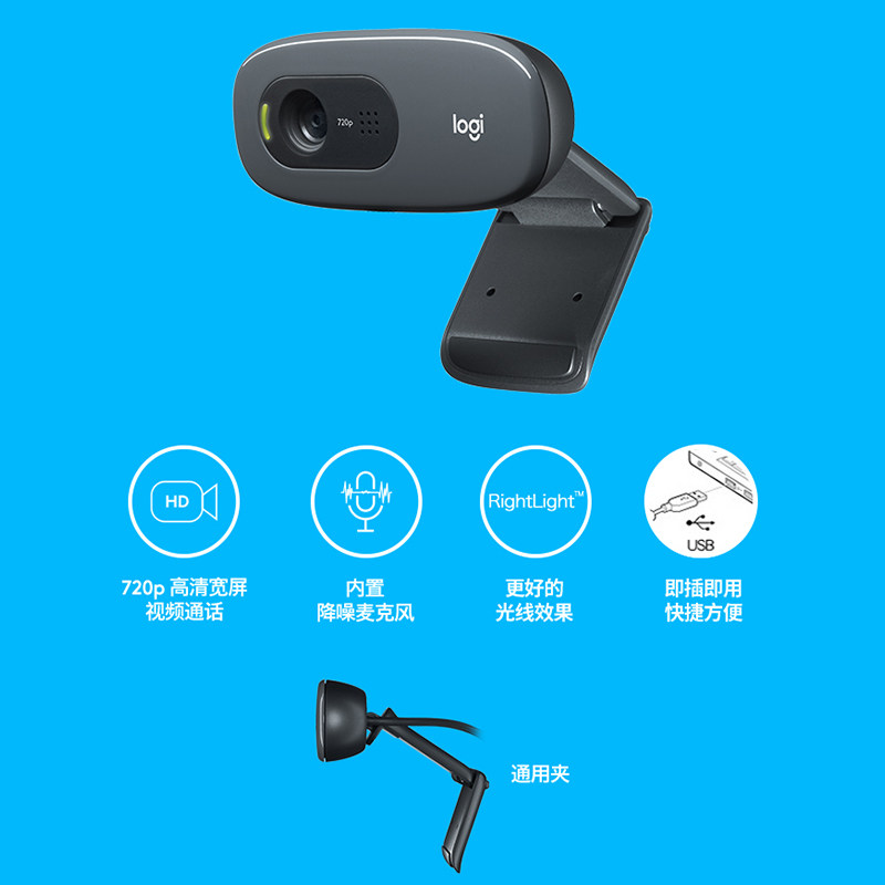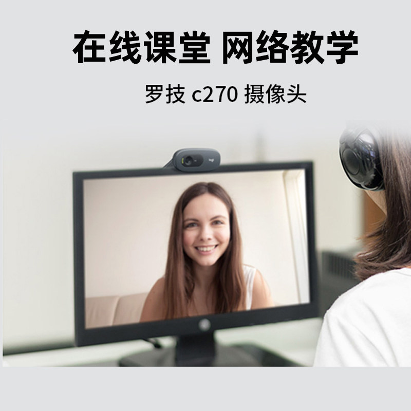 补贴罗技C270摄像头直播c270i台式电脑高清学生网课会议家用拆包