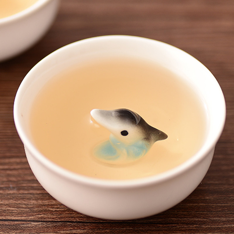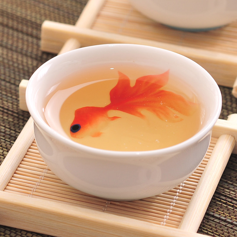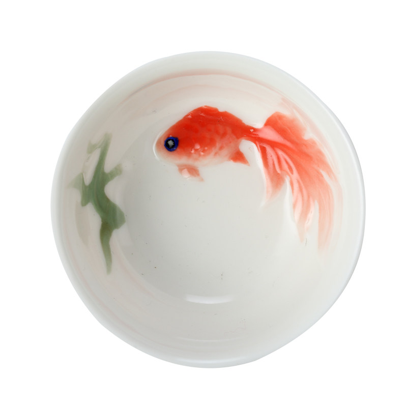 花水木 珐琅瓷手工彩绘茶杯创意立体鱼陶瓷小茶杯 品茗茶碗杯茶道