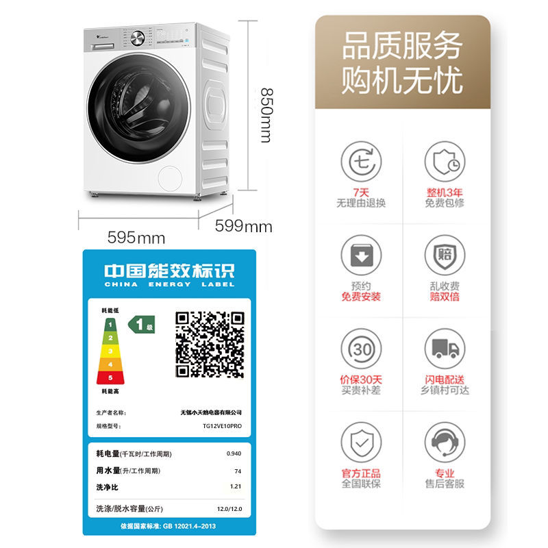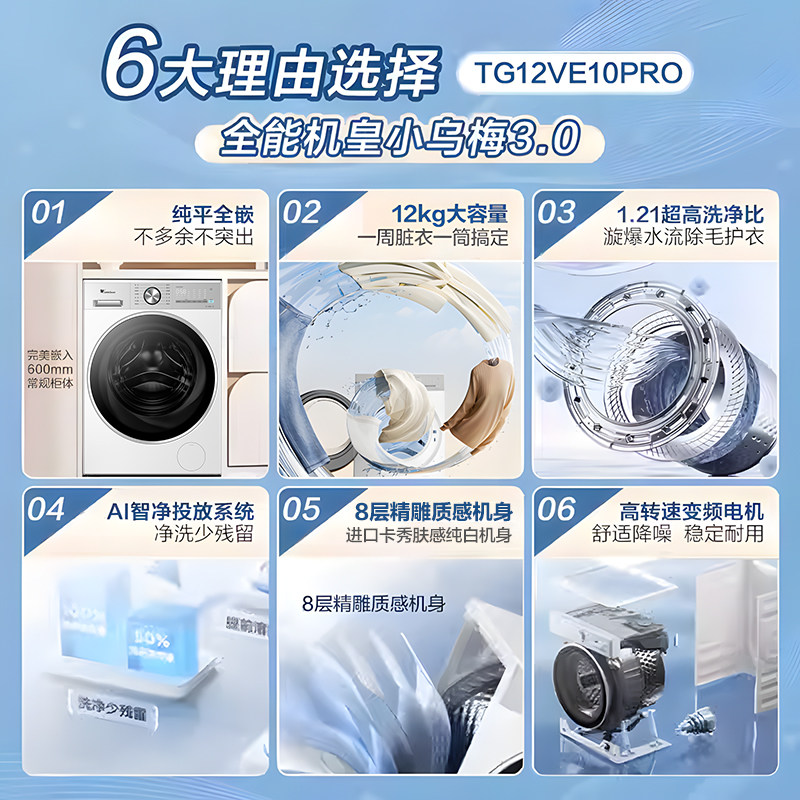 [政府补贴]纯平全嵌小天鹅小乌梅3.0洗衣机轻奢12KG滚筒家用VE10