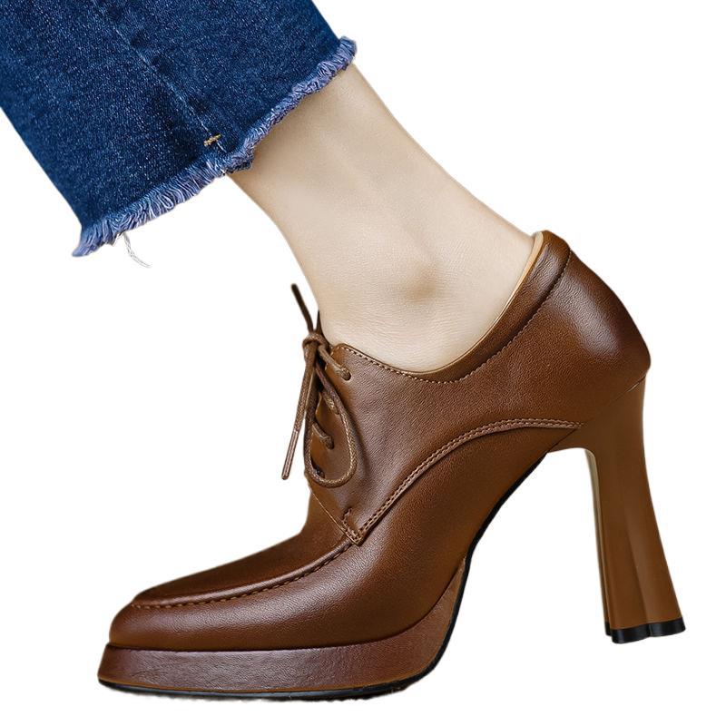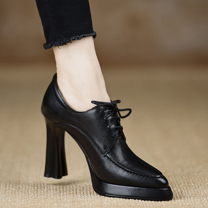 手工女鞋2025新款时尚绝绝子短靴防水台单鞋尖头系带高跟纯色