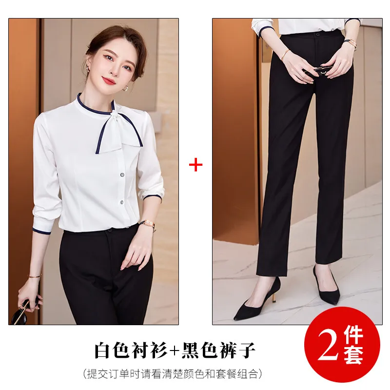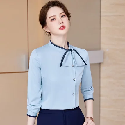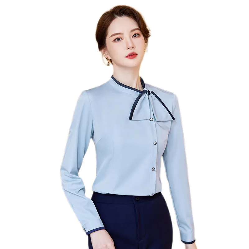 时尚蝴蝶结领白衬衫女长袖职业正装工作服工装气质免烫白色衬衣秋