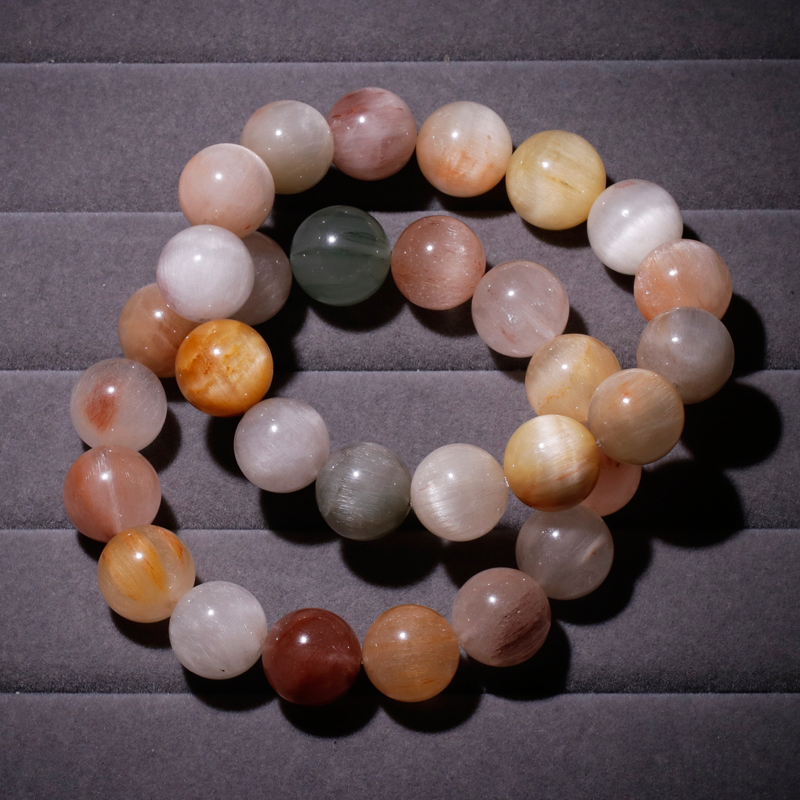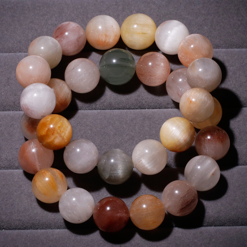 天然顺发彩兔毛单圈手链猫眼拉丝发晶水晶情侣手串一物一图礼物女