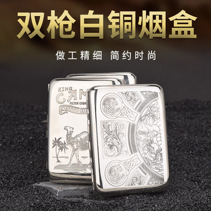 双枪16支白铜精雕烟盒