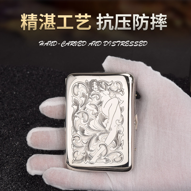 【祝融火具】双枪16支白铜精雕烟盒多图刻款男士抗压防水