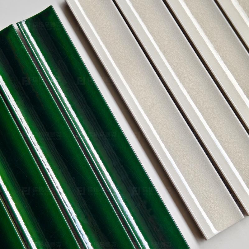 佳纷长条月牙凹面冰裂纹绿色金属釉马赛克酒吧吧台饭厅45X300瓷砖