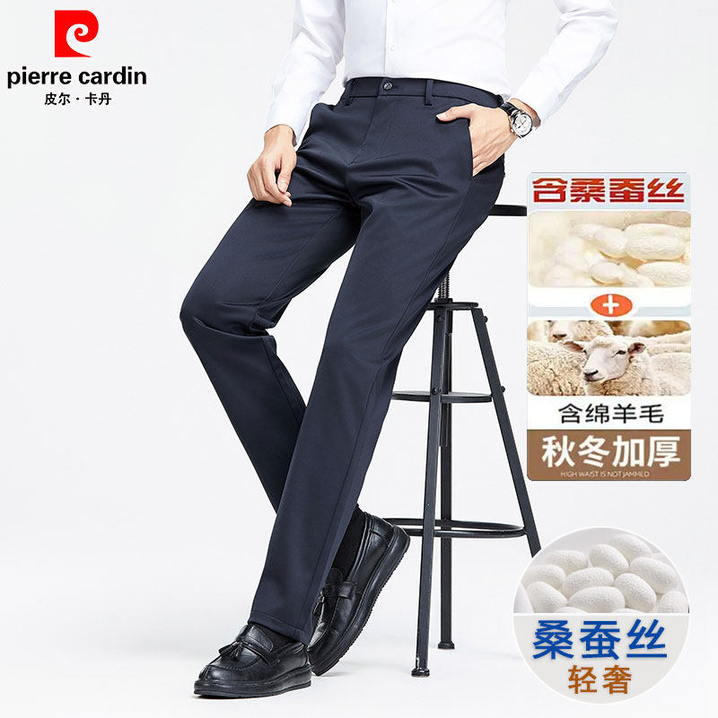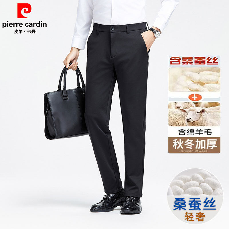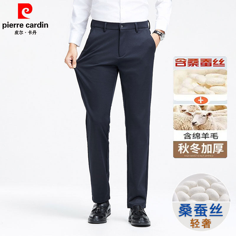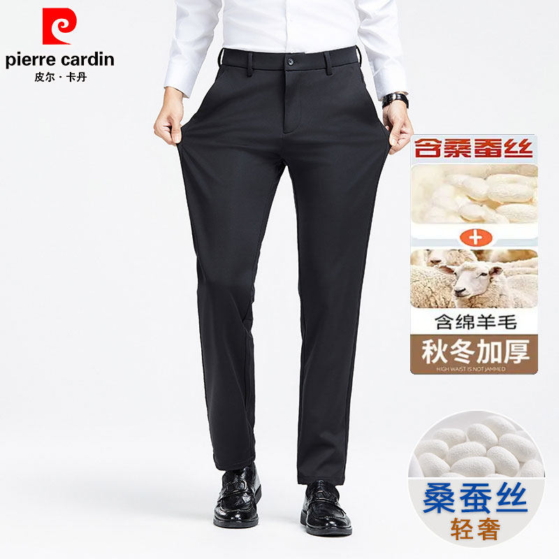 皮尔卡丹男士长裤2025新款秋冬季加厚保暖商务休闲西裤弹力直筒裤