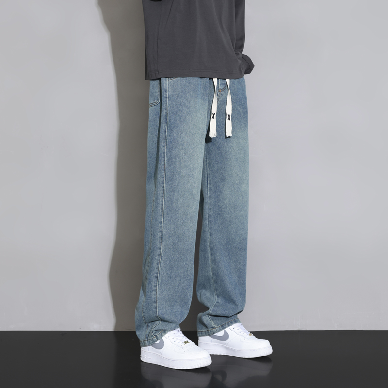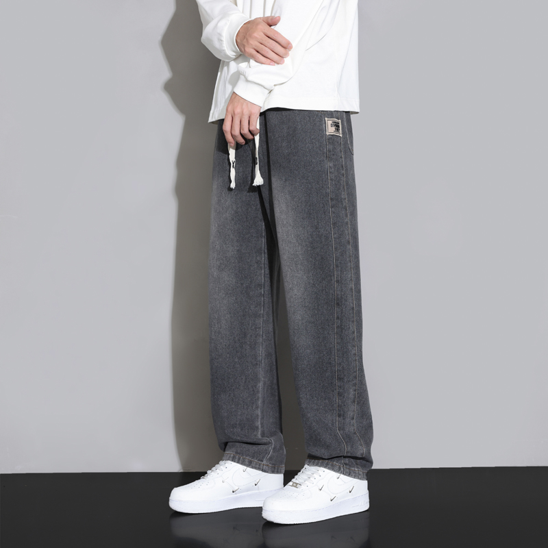 青少年直筒松紧腰牛仔裤男潮牌