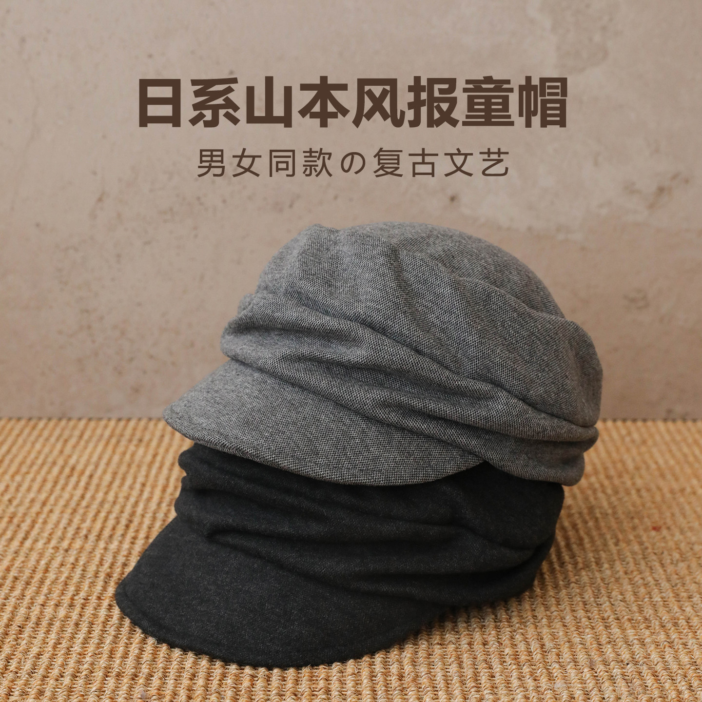 日系山本风报童帽男生文艺复古设计感褶皱马术帽女生气质鸭舌帽子