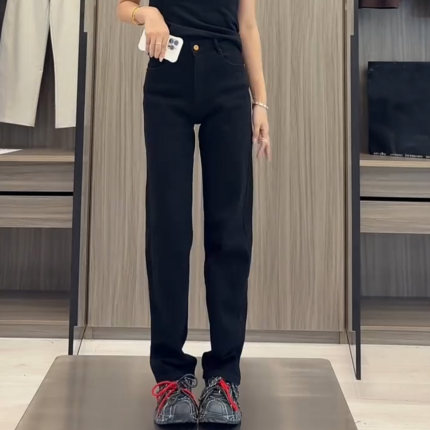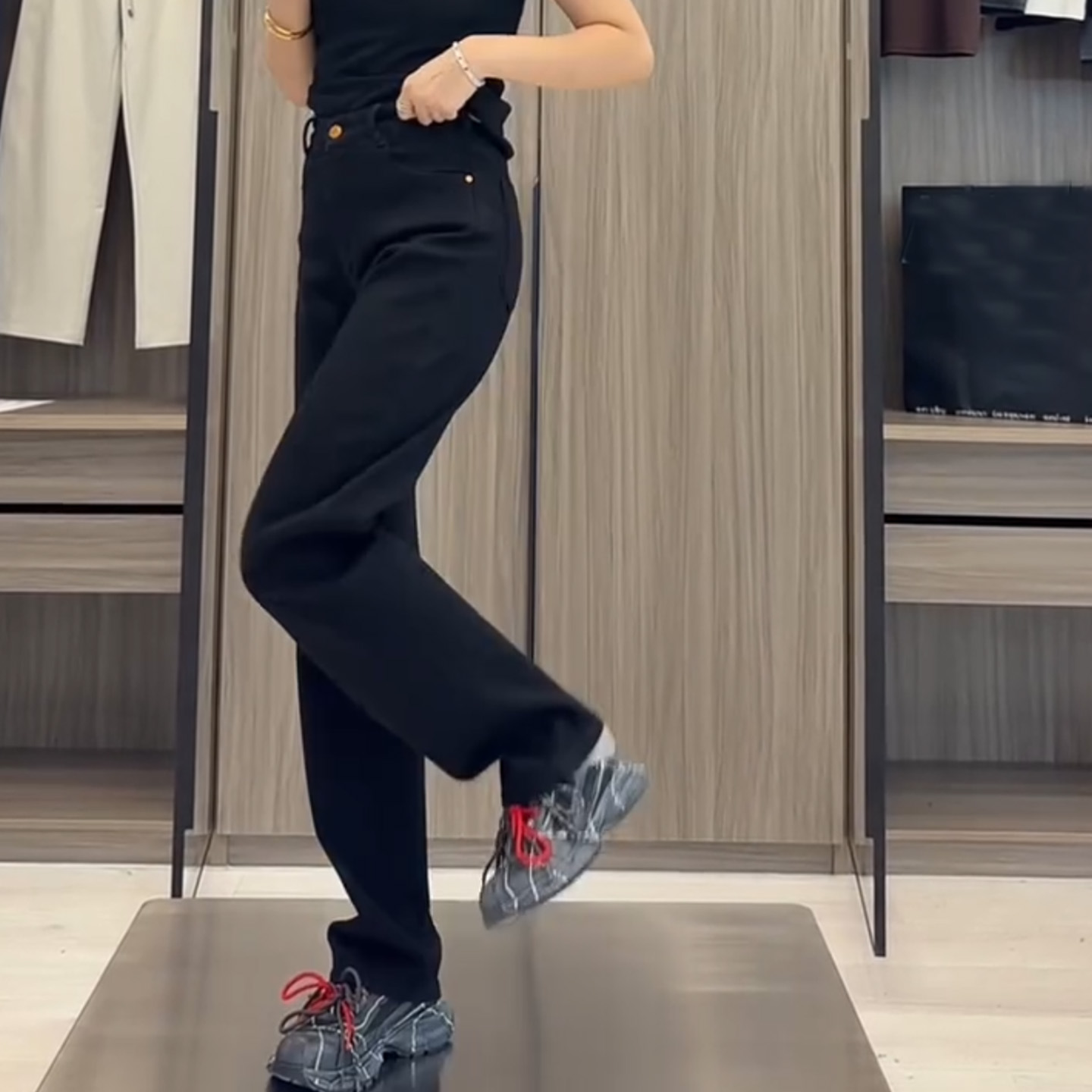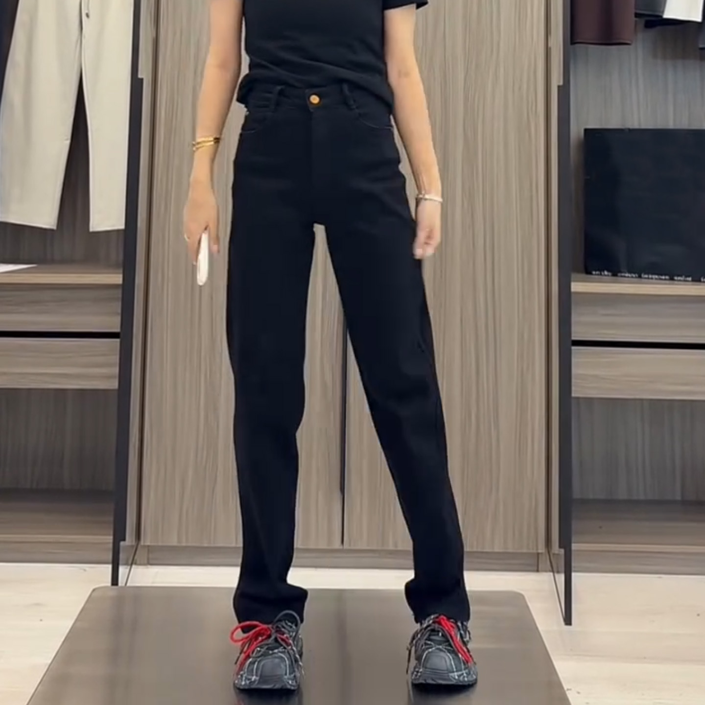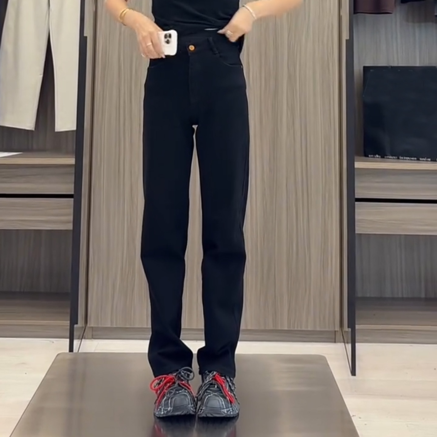 大码高腰弹力窄版直筒牛仔裤女2025秋季新款宽松显瘦百搭拖地长裤