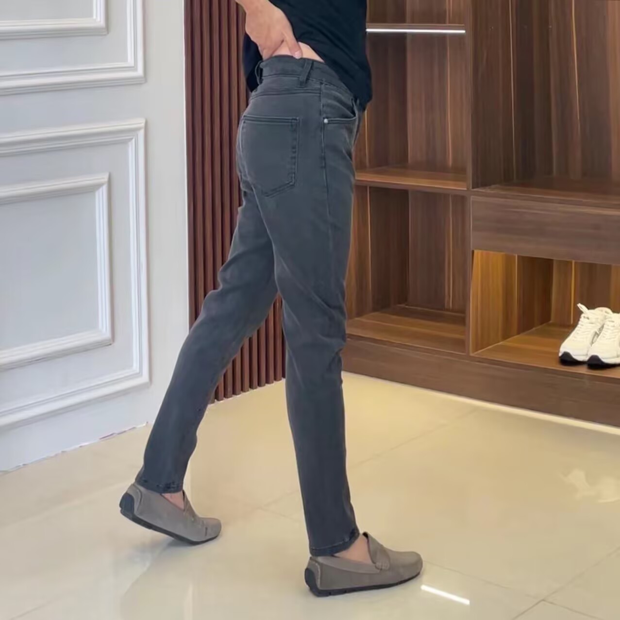 高端简约牛仔裤男修身小脚秋季新款韩版简约百搭显瘦弹力休闲长裤