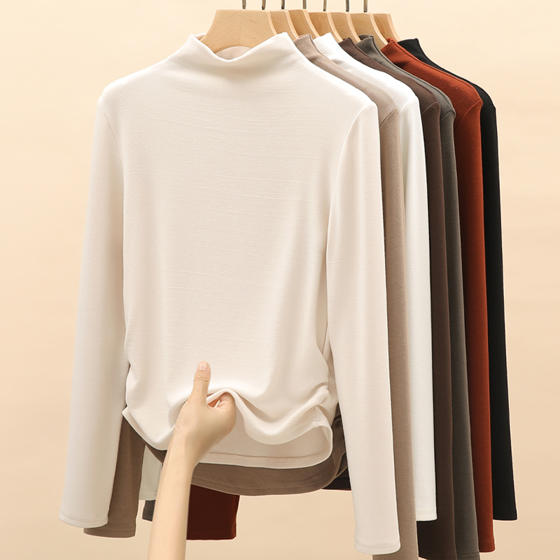 半高领打底衫女春秋内搭2024年新款设计感上衣黑色修身长袖T恤女