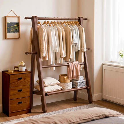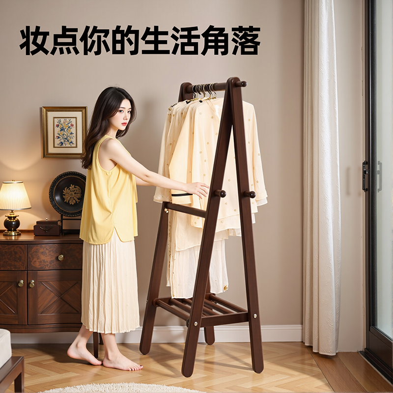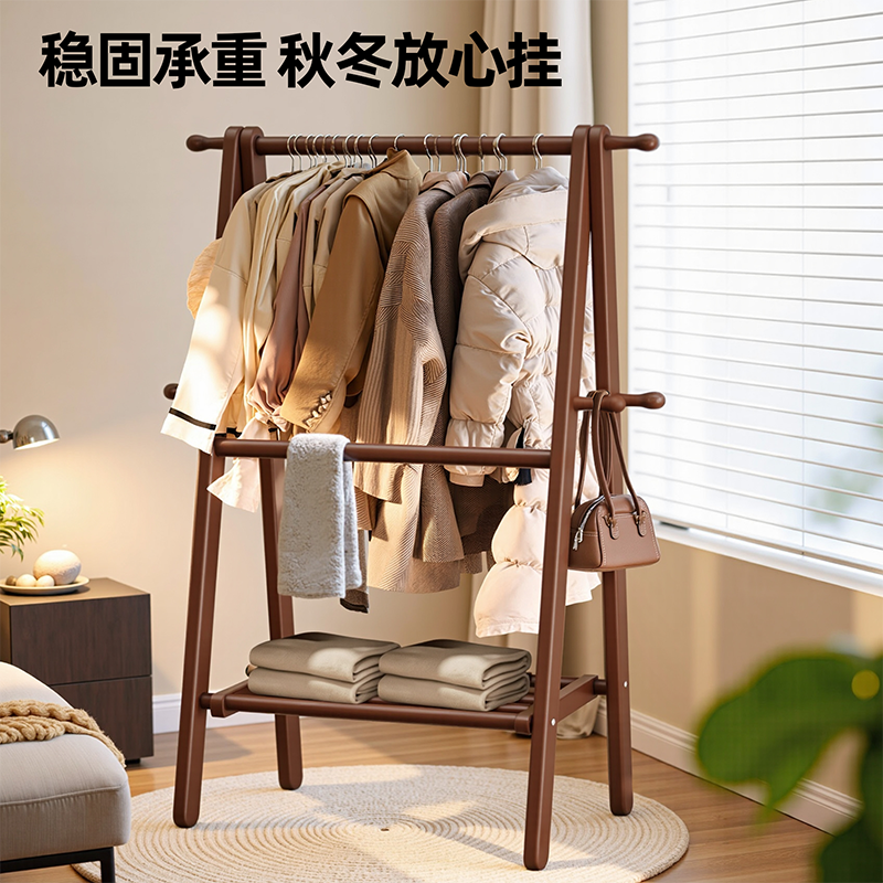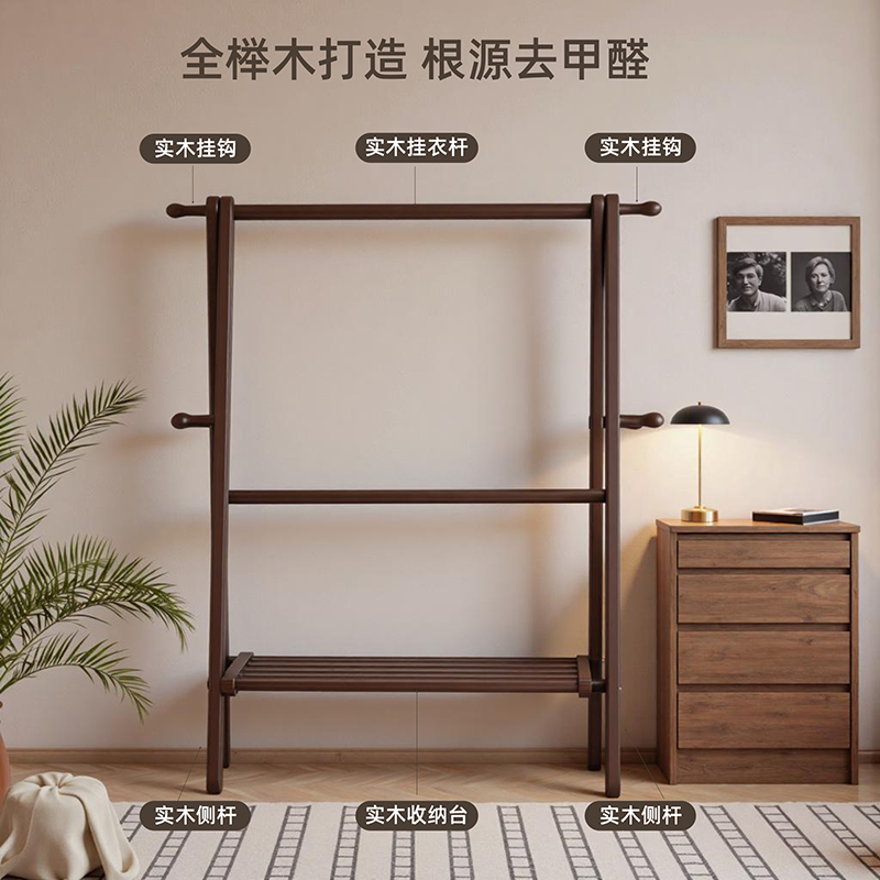 榉木挂衣架落地卧室家用实木衣帽架简易晾衣架置物室内挂衣服架子