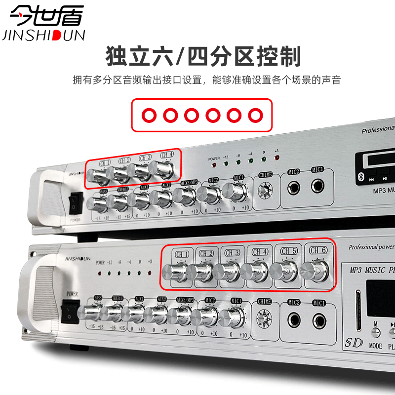 今世盾无线蓝牙功放机大功率专业功放店铺校园广播定压分区公放器